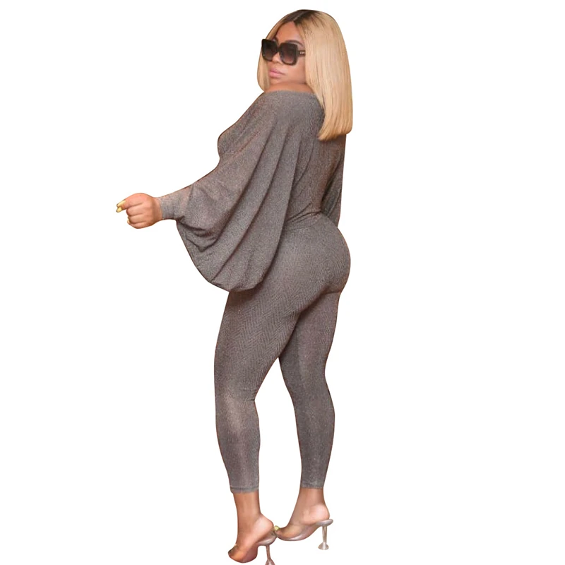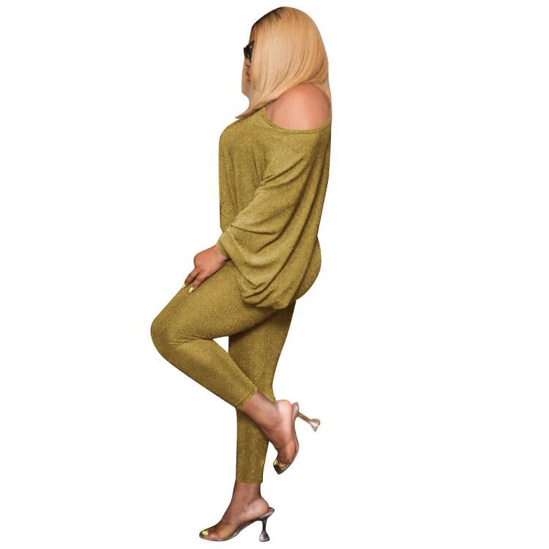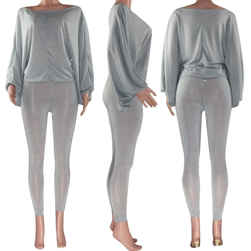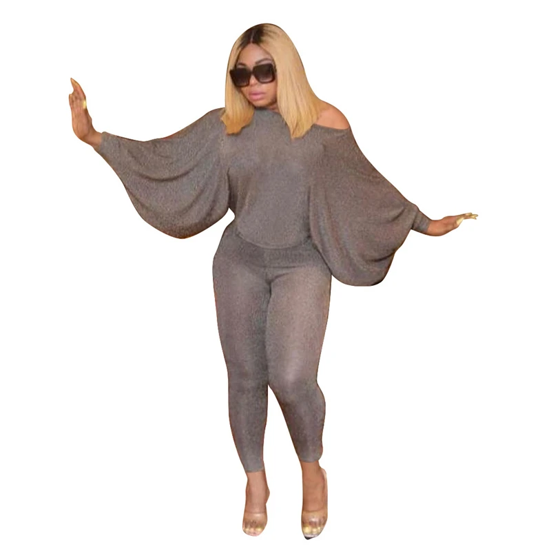 Adogirl Блестящие Блестки Шелковый Модный повседневный комплект из двух предметов топ с открытыми плечами рукавом летучая мышь брюки-карандаш