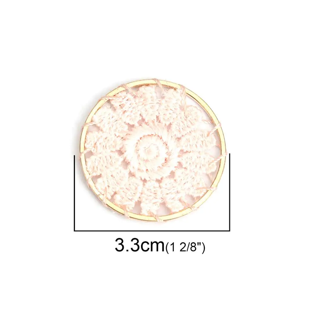 DoreenBeads Модный цинковый сплав и хлопок соединители Круглый Золотой Хаки Многоцветный цветок тканый узор 3,3 см диаметр., 10 шт.
