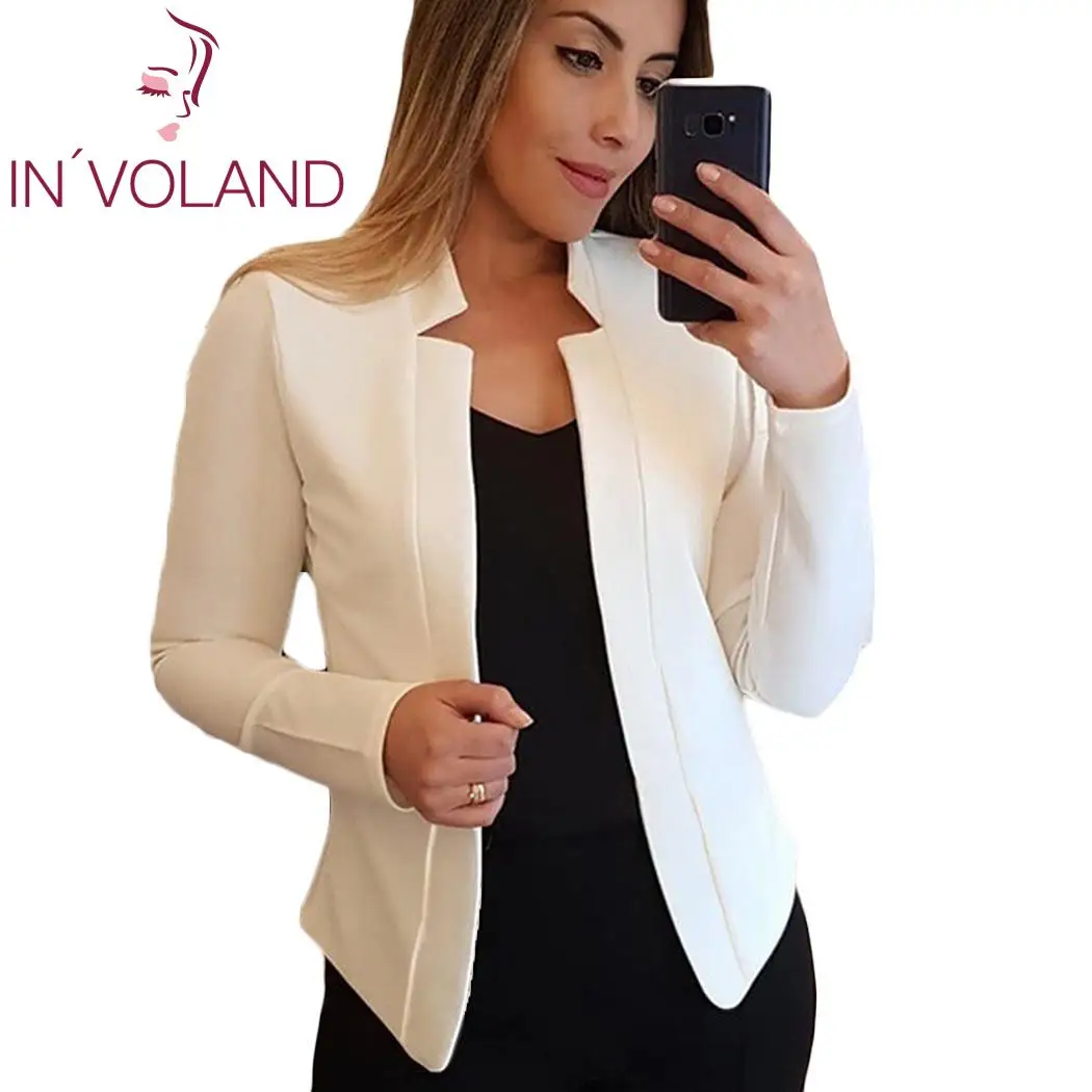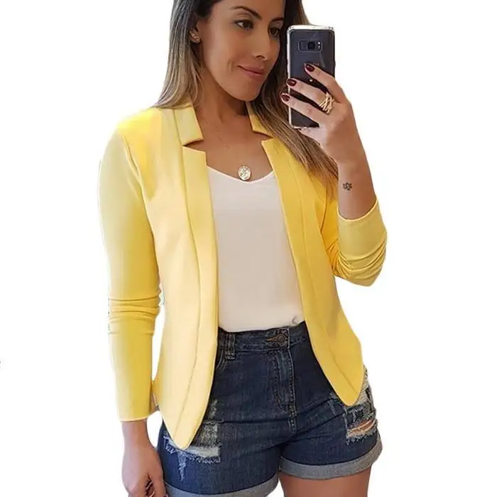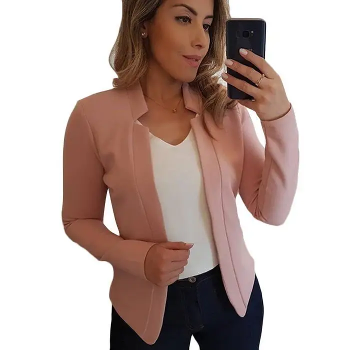 Женский однотонный Блейзер размера плюс, с длинным рукавом, спереди и открытой строчкой, облегающий, для осени и весны, верхняя одежда