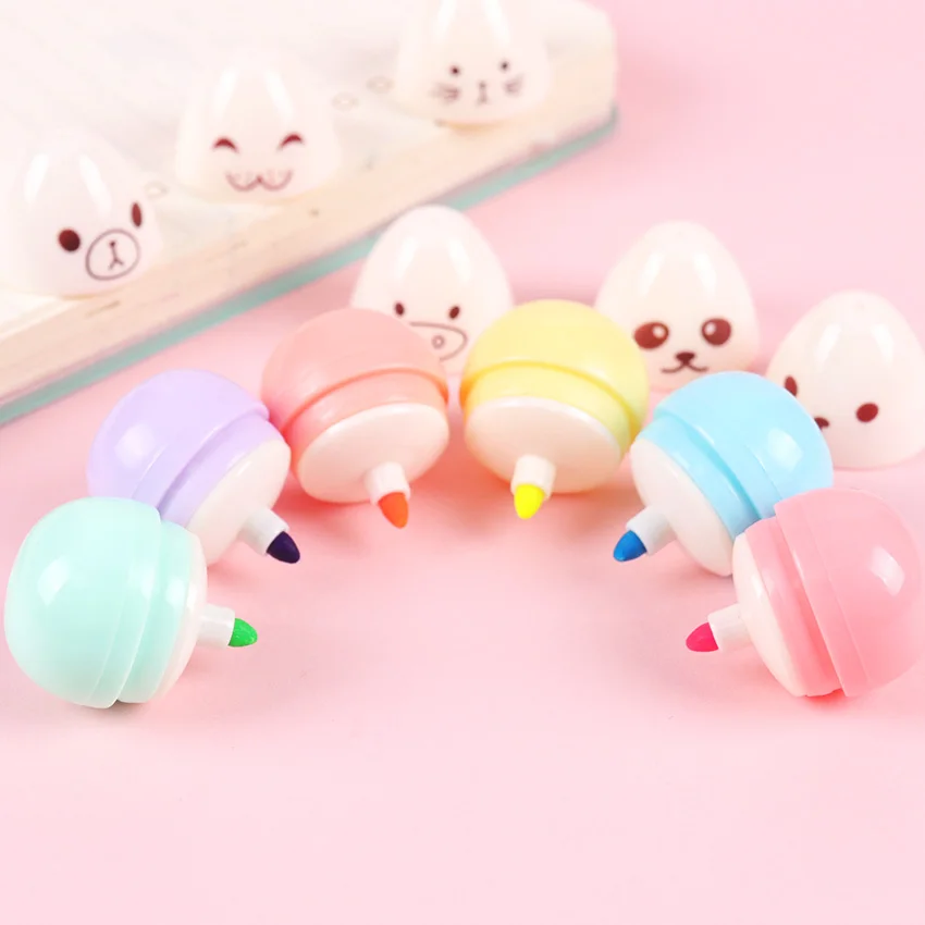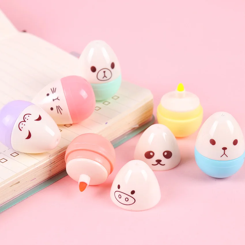 6 шт., милые мини-маркеры в виде смайлика, яйца, кавайные Детские офисные Маркеры для граффити, флуоресцентные маркеры сделай сам