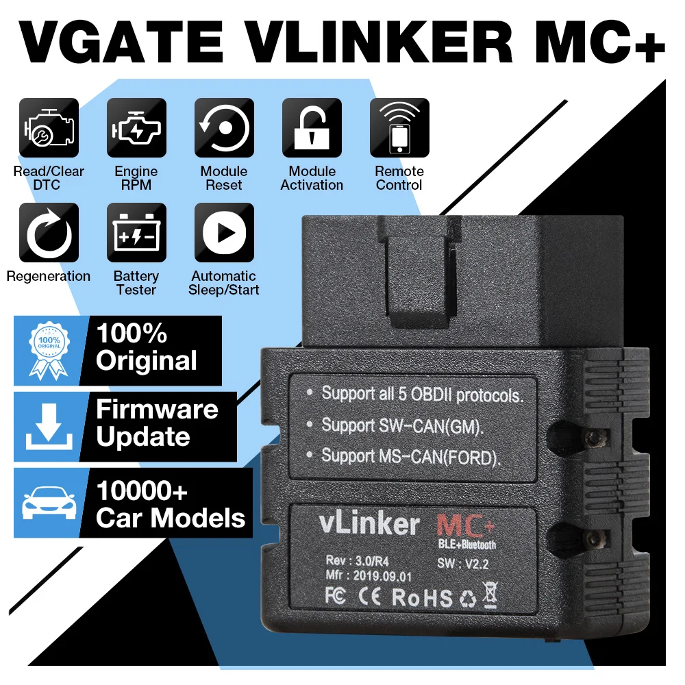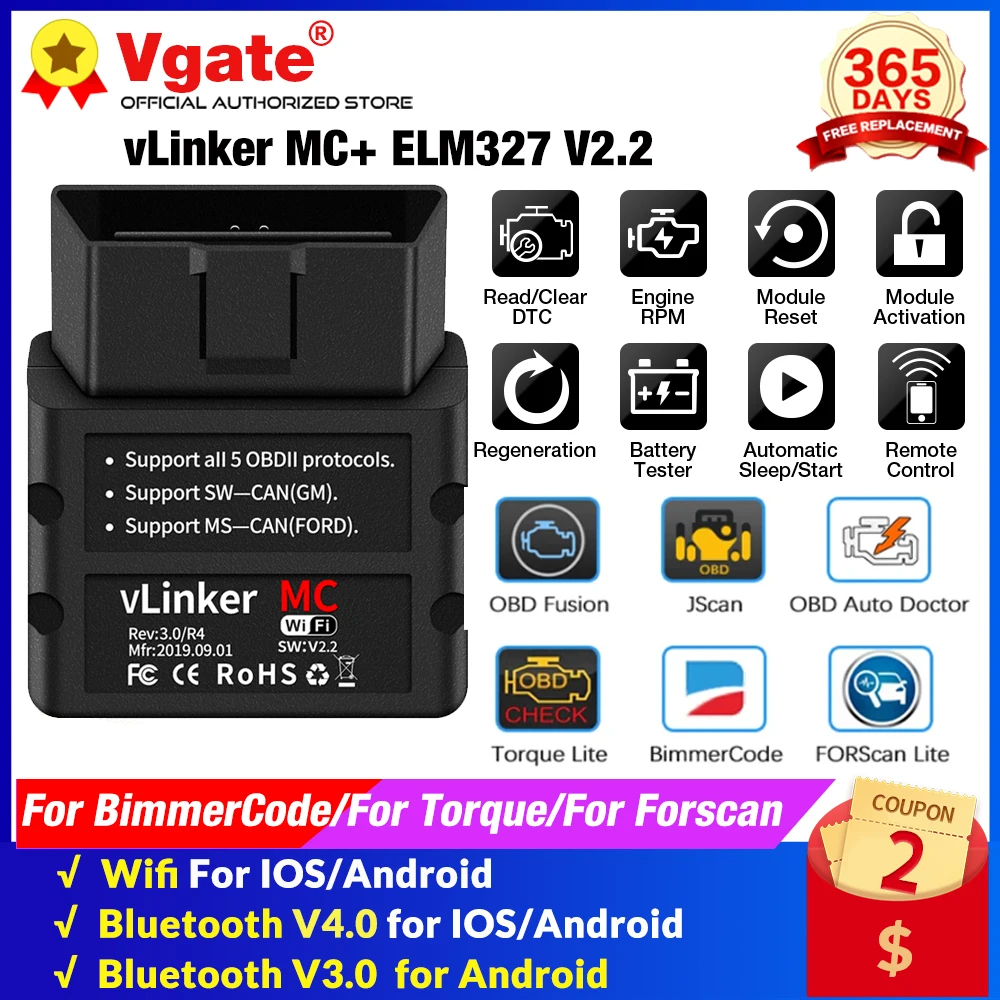 Автомобильный диагностический сканер Vgate vLinker MC + ELM327 V2.2 WIFI OBD2 Bluetooth-совместимый ICAR PRO 4,0 ELM 327 для AndroidIOS