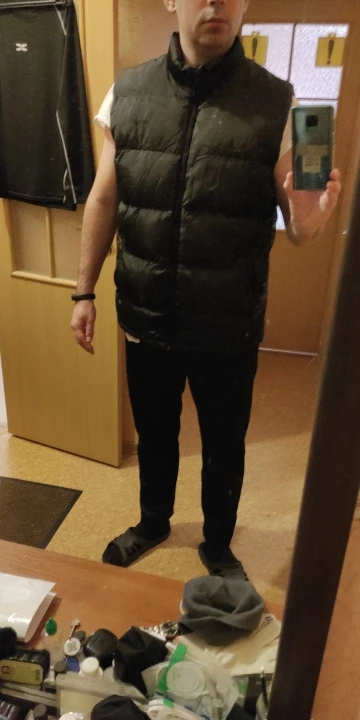 Размер не очень подходит для меня. Толстовка и штаны норм а жилетка мне маловато