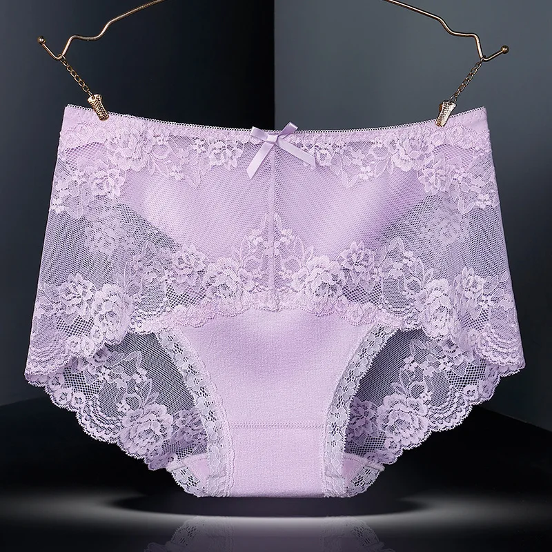 Сексуальные ажурные кружевные Бесшовные женские трусы со средней талией, прозрачные тонкие цветы, женское нижнее белье из хлопка с ластовицей