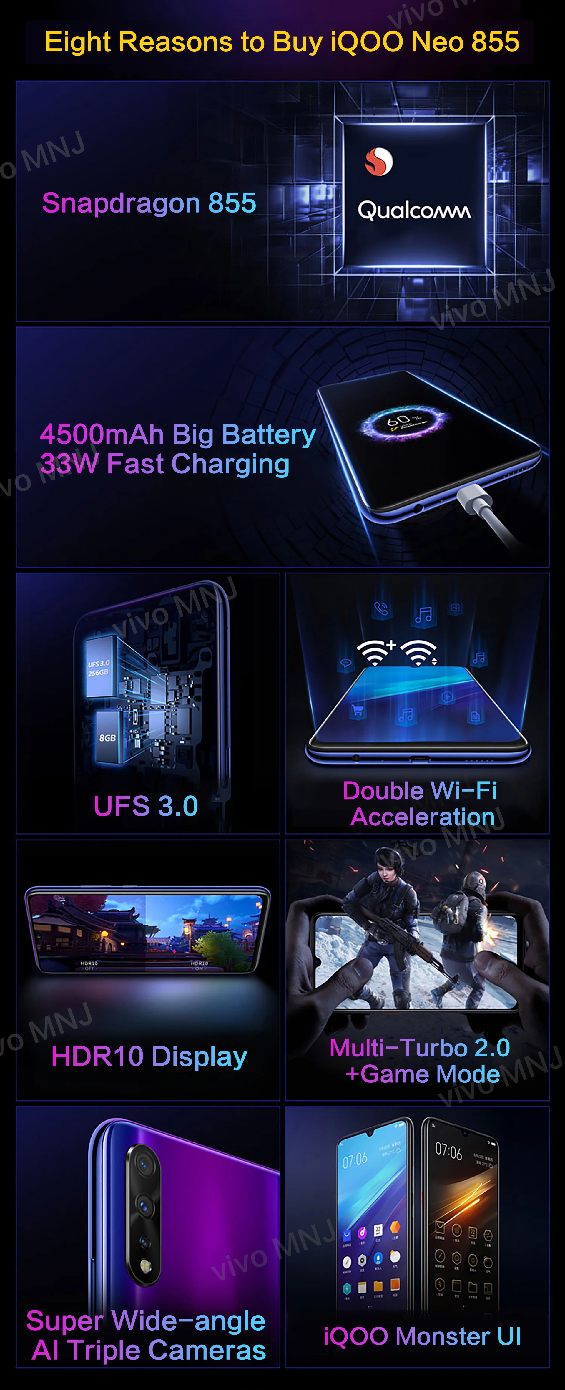 Vivo iQOO Neo 855 смартфон с восьмиядерным процессором Snapdragon 855, ОЗУ 6 ГБ, ПЗУ 128 ГБ, 4500 мАч, 33 Вт