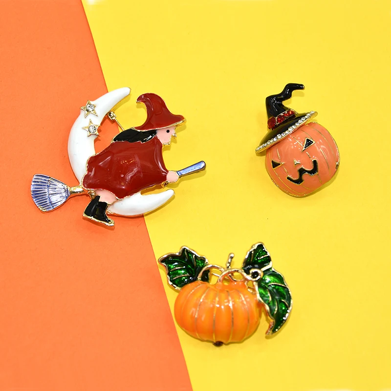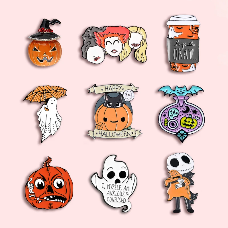 Хэллоуин Тыква призрак металлическая брошь с эмалью милый кот метла Луна ведьма кофейная чашка значок булавка Забавный Модная бижутерия подарок бутоны
