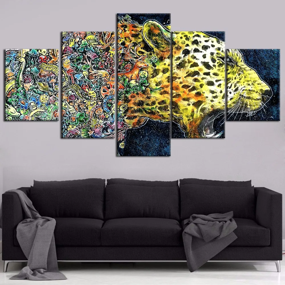 Топ-рейтинг 5 шт. холст печать Абстрактная живопись художественный Гепард Тип плакат для дома декоративный гостиная или спальня в рамке