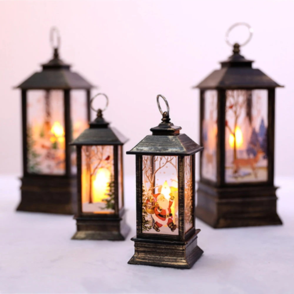 Рождественская Подвесная лампа с рождественским пламенем, светодиодный светсветильник льник с рисунком лосяснегаСанта-Клауса, домашнее украшение