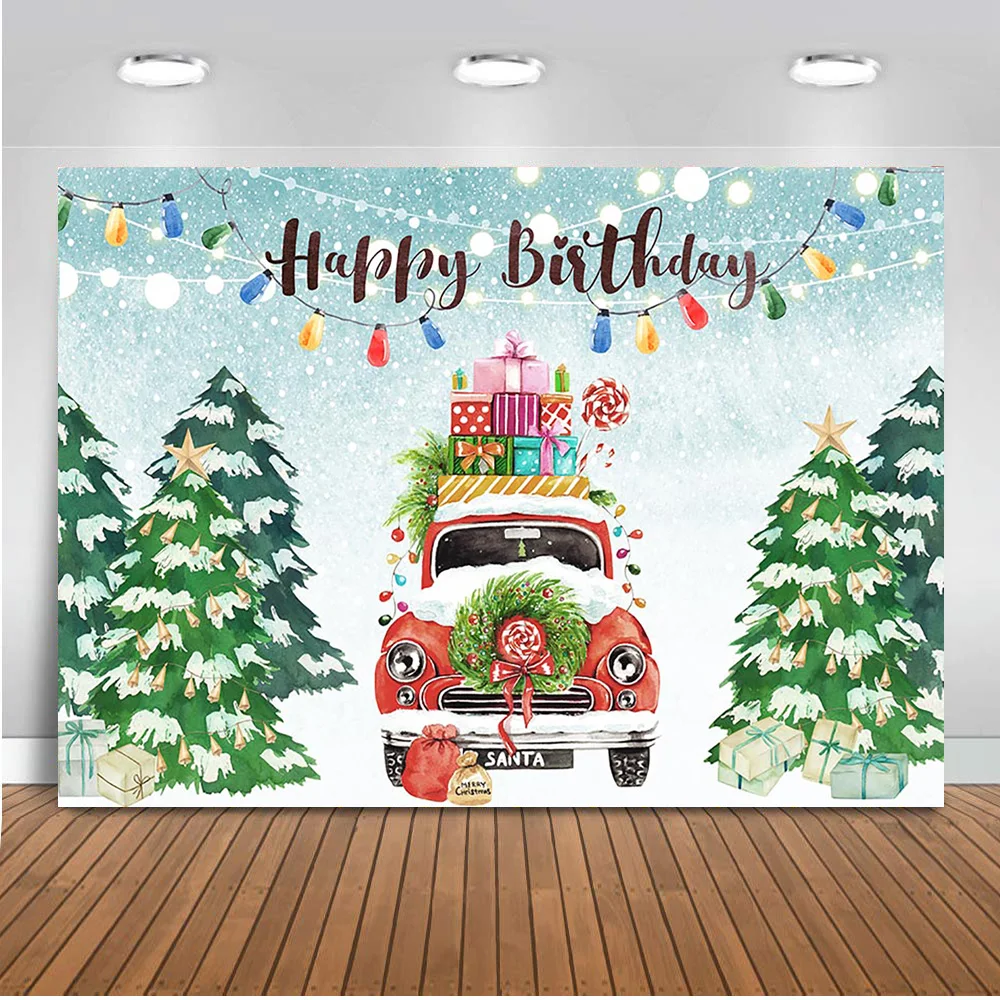 С днем рождения Рождество фон снежинка зима Страна Чудес фото фон светильник Рождественская елка подарки автомобиль день рождения вечерние