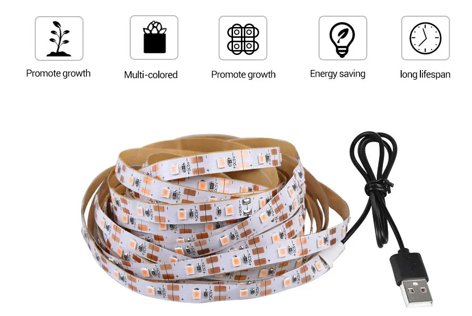 Светодиодная фитолампа полного спектра для выращивания растений, Светодиодная лента с USB, 0,5 м, 1 м, 1,5 м, 2 м, 3 м, 2835 SMD, светодиодсветодиодный фитолампа для теплицы и гидропонных систем выращивания растений