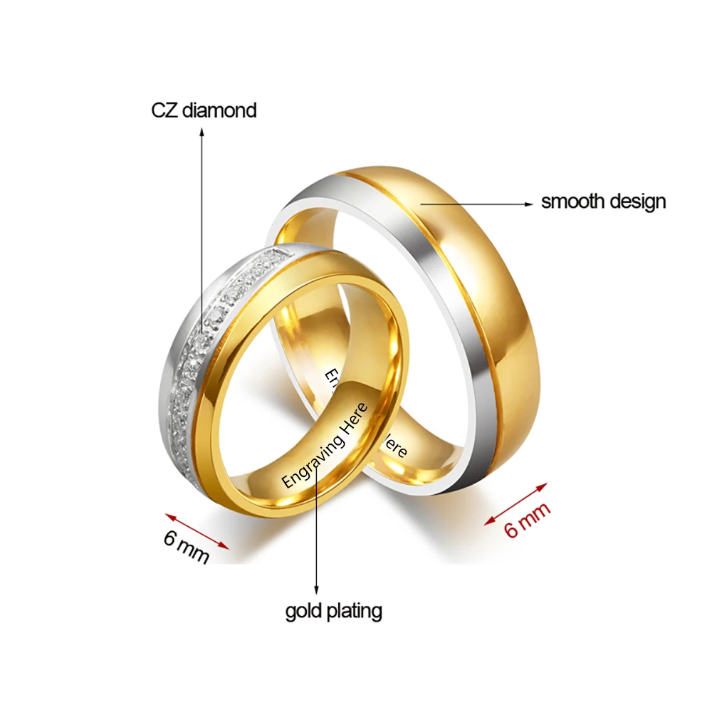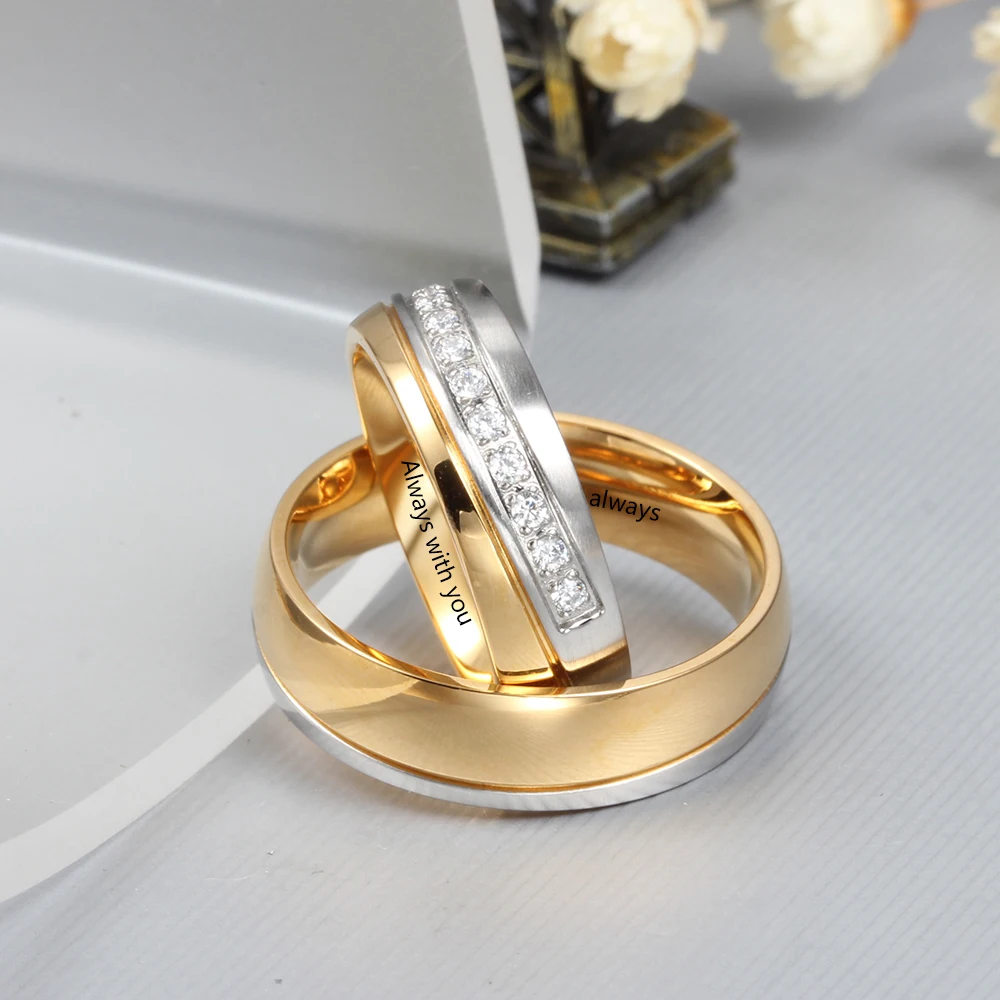 Индивидуальные Имя гравировка Свадебная заниматься Для мужчин t кольца для мужчин и женщин Для мужчин персонализированные Пара Кольца с цирконием, Юбилей подарок