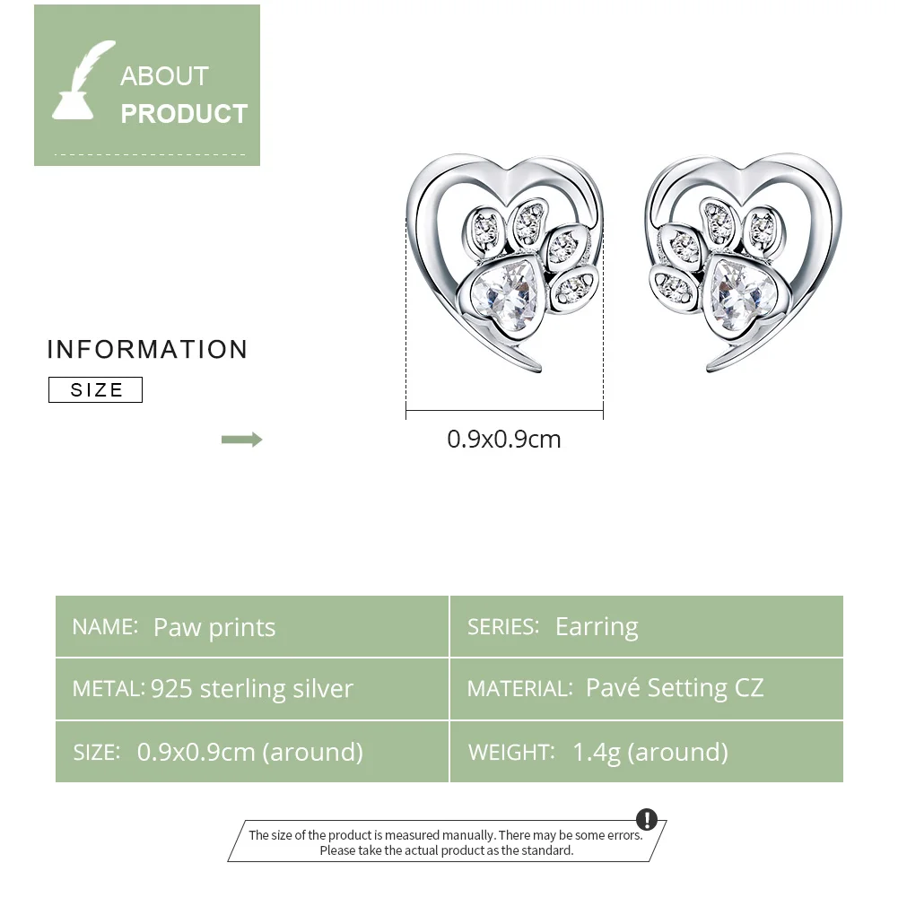WOSTU 925 пробы, серебряные серьги-гвоздики в форме лапы собаки, се...