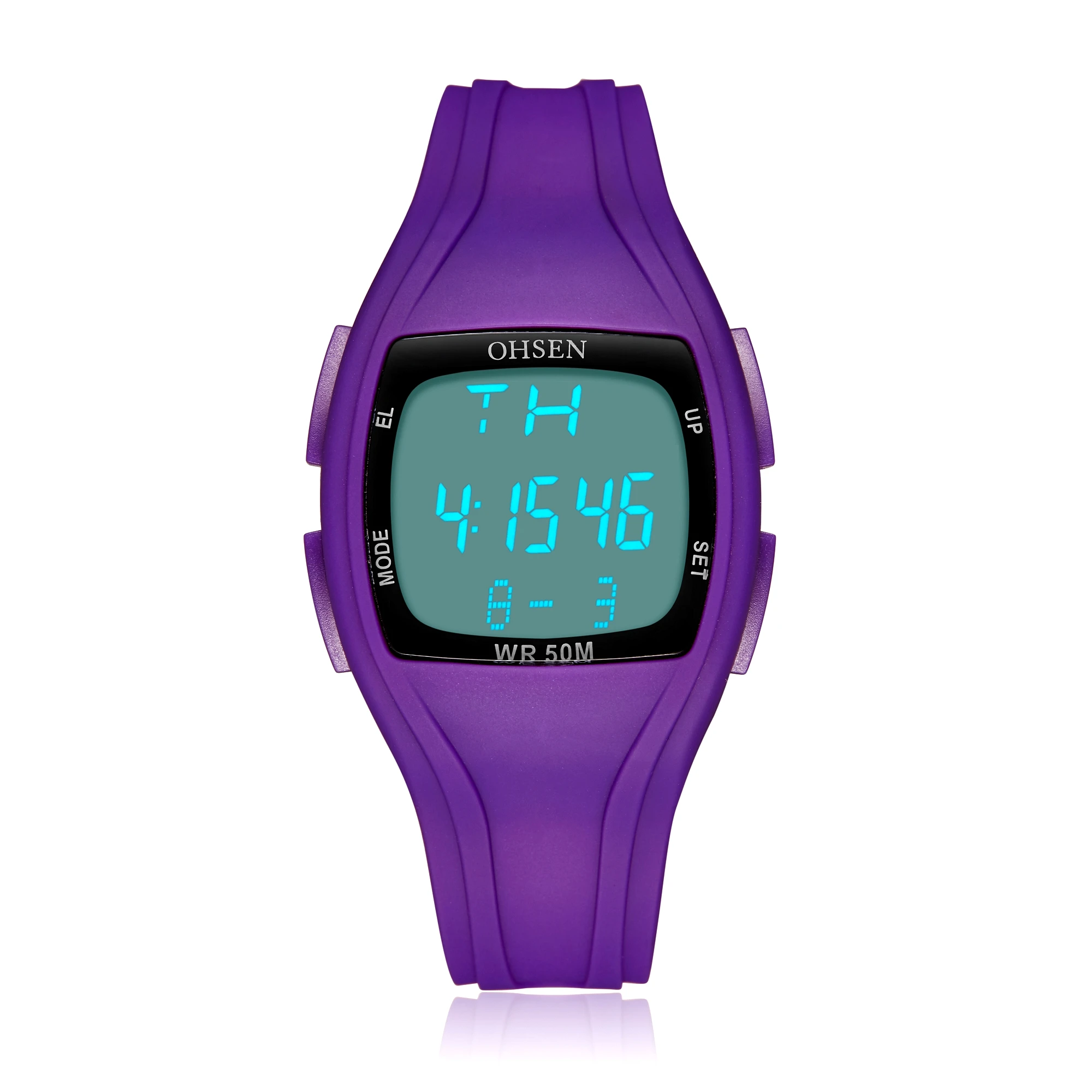 Цифровые светодиодные женские спортивные часы, Модные фиолетовые силиконовые водонепроницаемые женские часы, наручные часы для мальчиков и девочек, женские часы с секундомером