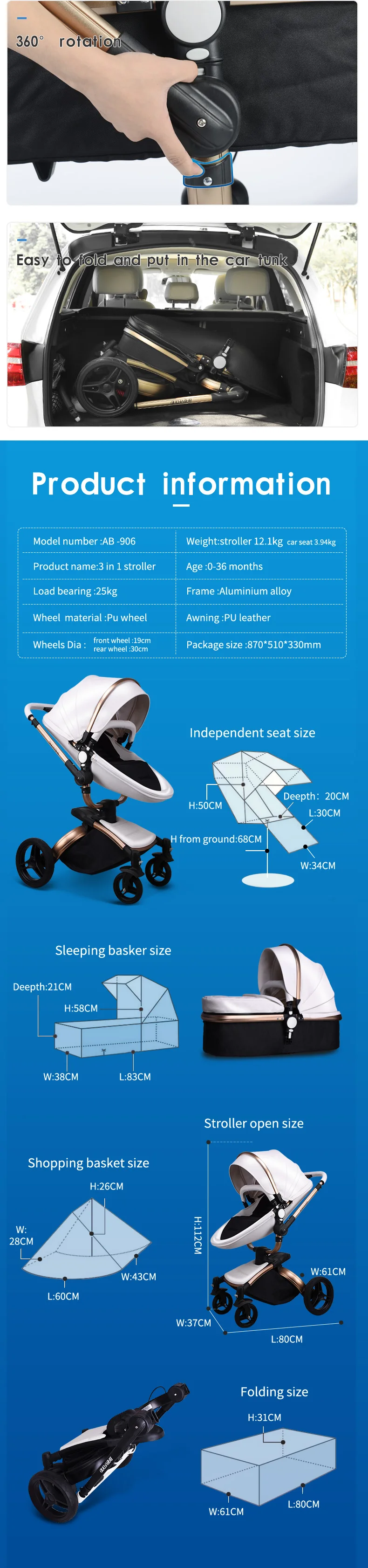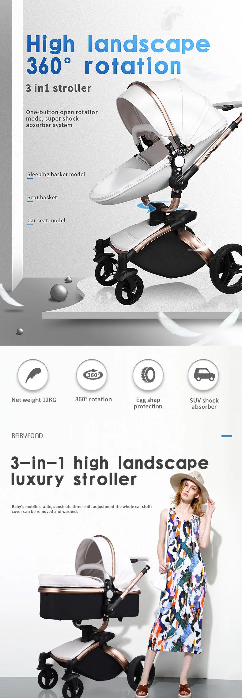 Детская коляска Babyfond 3 в 1, роскошная коляска для новорожденных, модная коляска из искусственной кожи, Бесплатная доставка в ЕС