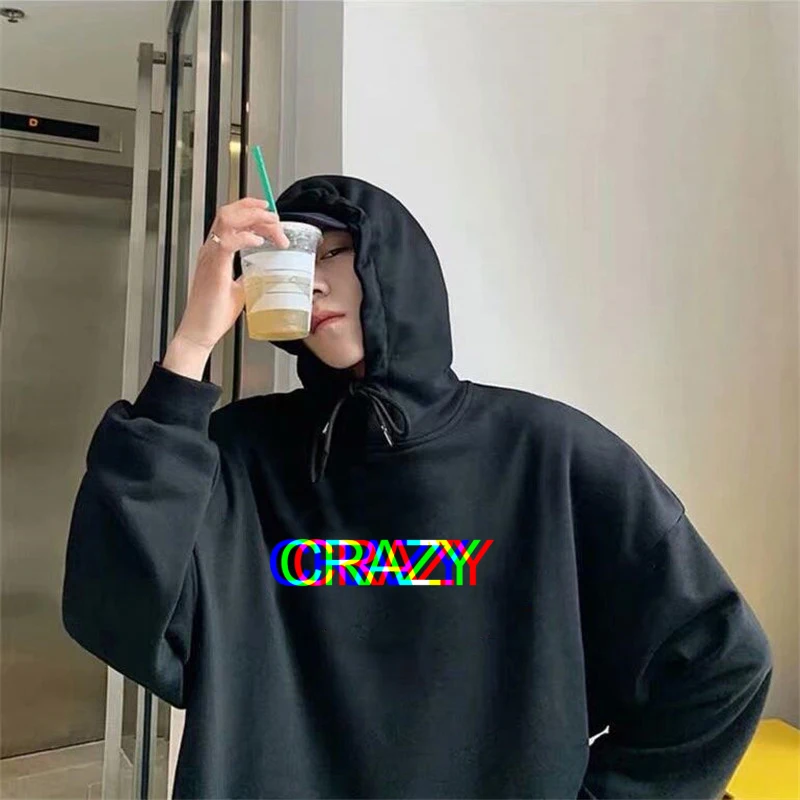 Повседневные толстовки в стиле Харадзюку с надписью Crazy, мужские толстовки с красочным рисунком, Мужская Уличная одежда в стиле хип-хоп унисекс, мужские свитшоты