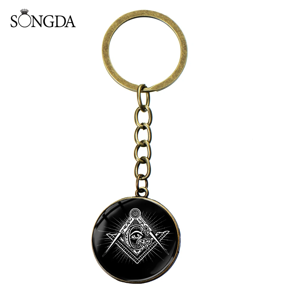Новинка 2019, черный масонский брелок для ключей, брелок для ключей, призрачный глаз, со стеклянным фото куполом, цепочка для ключей, безделушки серии Freemason