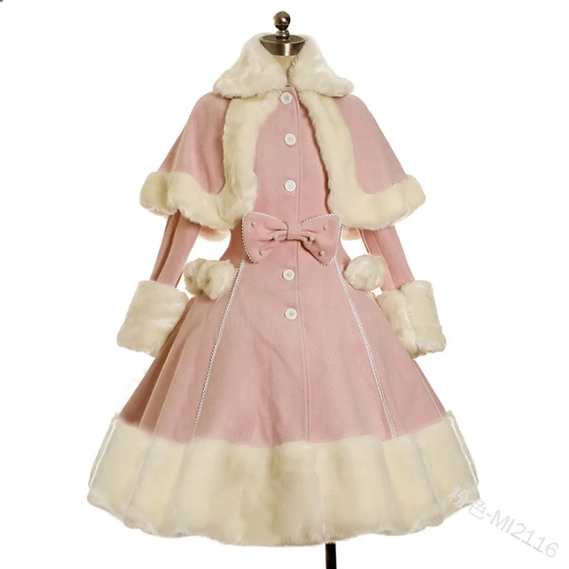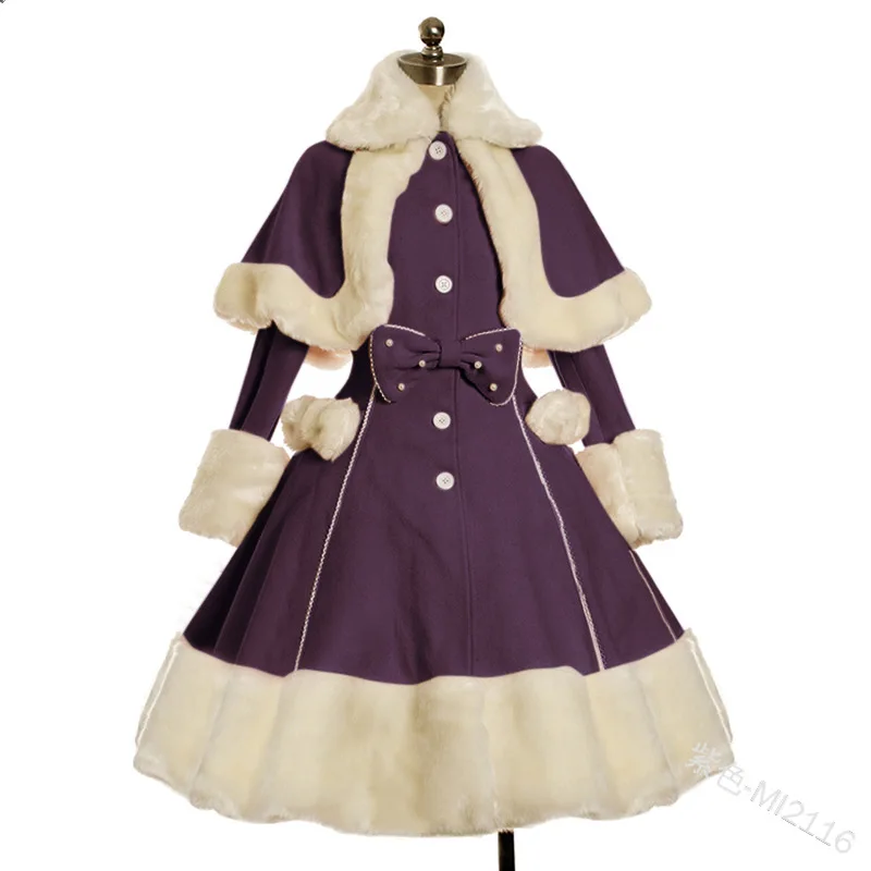 Женский костюм Лолита с меховым воротником, винтажная Готическая те...
