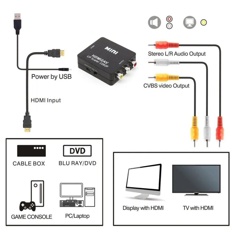1 х HDMI в AV RCA видео конвертер (черный или белый)