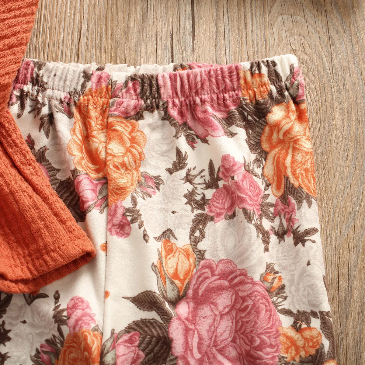 Детский топ с длинным рукавом и оборками и брюки с цветочным принтом