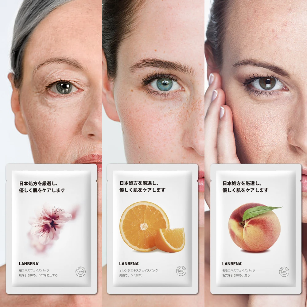 Маска для лица от LANBENA, фруктовая маска для лица, увлажняющая отбеливающая растительная экстракт, свежий лист, японская усовершенствованная формула, маска для лица
