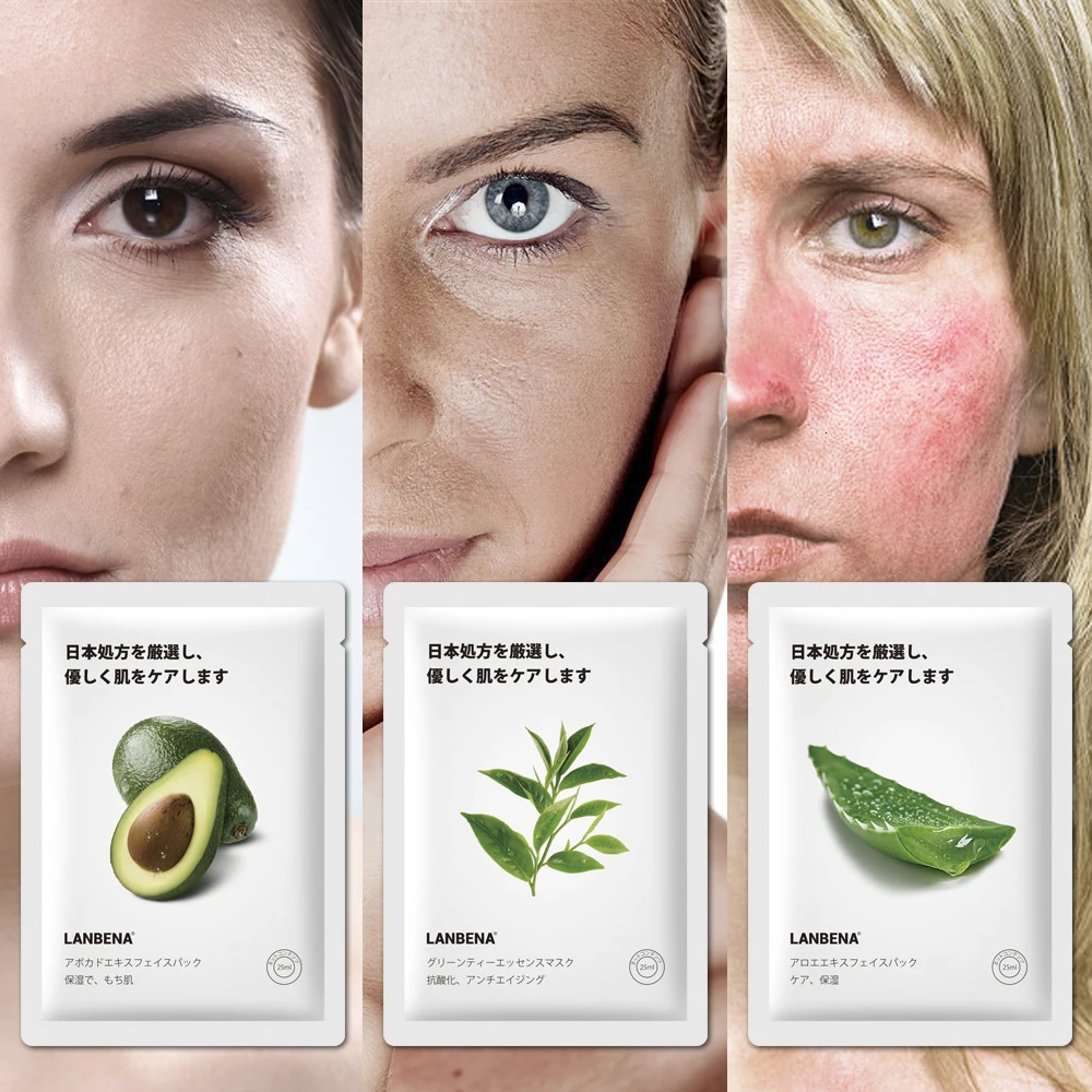 Одна волшебная маска для лица из Японии Может восстанавливать сухую и чувствительную кожу Снижения чувствительности темп Улучшение увлажняющий эффект Ремонт способствует культивации рогового слоя Как выбрать одну подходящую маску для лица из множества? Любая маска LANBENA подходит для вас!