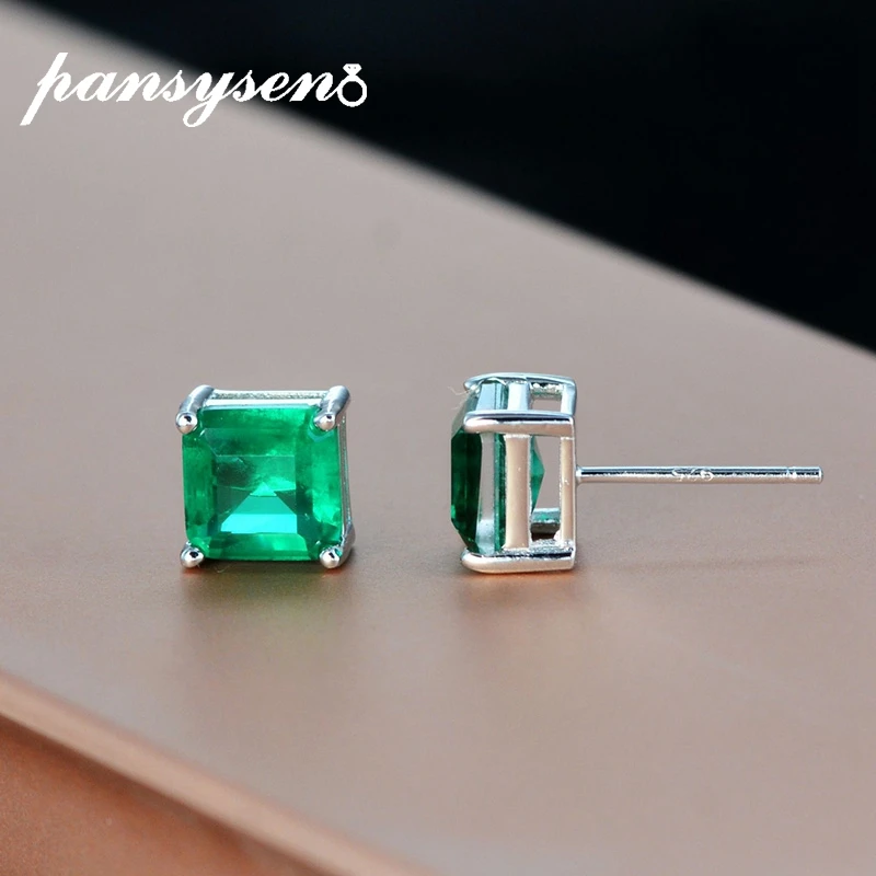 Женские серьги-гвоздики из серебра 100% пробы с изумрудом 7 мм