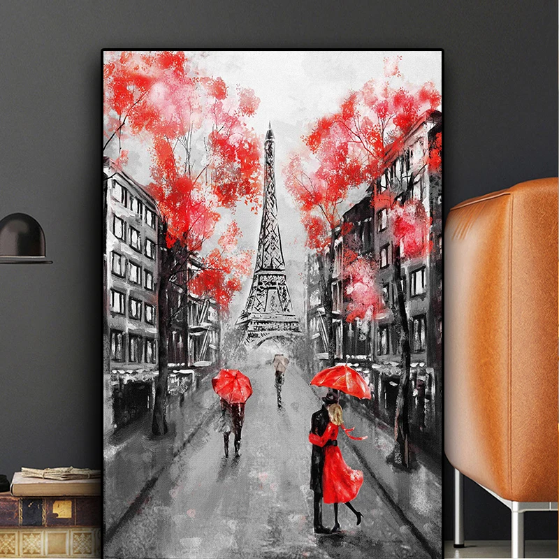 Картина маслом на холсте с изображением романтического города пары Парижа Эйфелевой башни, плакаты и принты, Настенная картина в скандинавском стиле для гостиной