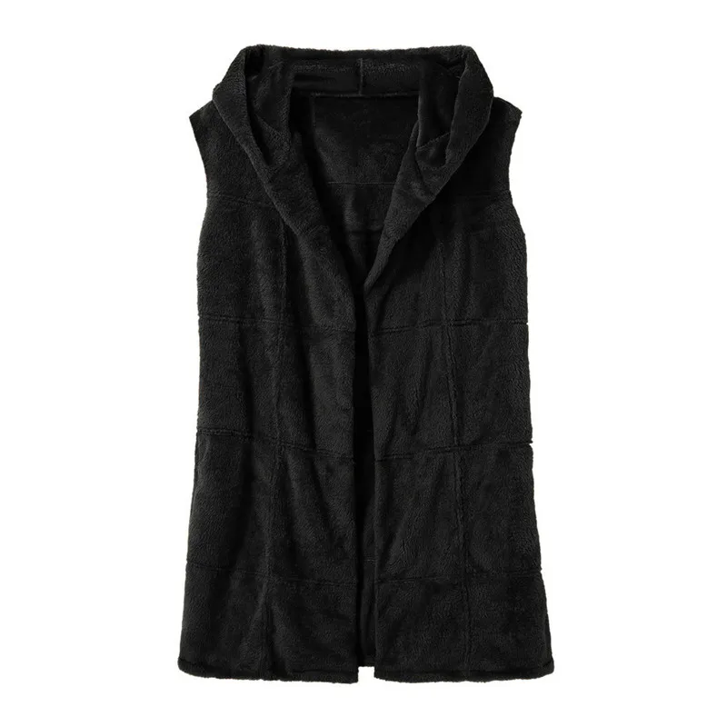 Женское пальто без рукавов с капюшоном, однотонное теплое длинное шерстяное пальто размера плюс