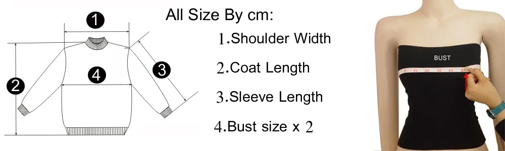 2. Это зимнее пальто, поэтому обычно мы советуем покупателю выбрать размер немного больше на 4-6 см, чем размер бюста, чтобы вы могли носить одежду внутри