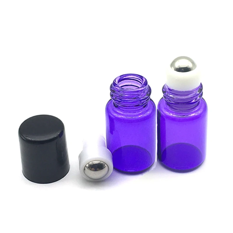 Фиолетово-синяя стеклянная бутылка, рулон на пустой аромат, парфюмерная бутылка эфирного масла, 2 мл, рулон, черная пластиковая крышка, бутылка