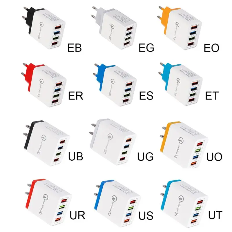 Цветное зарядное устройство с 4 USB-портами для зарядки в путешествиях