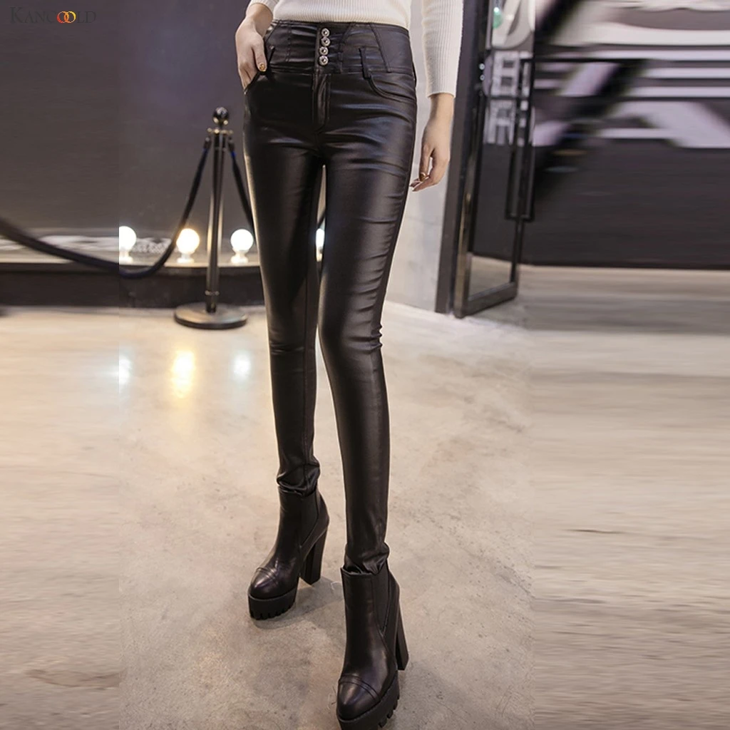 Женские повседневные брюки KANCOOLD, однотонные теплые кожаные брюки на пуговицах, 2019Oct25