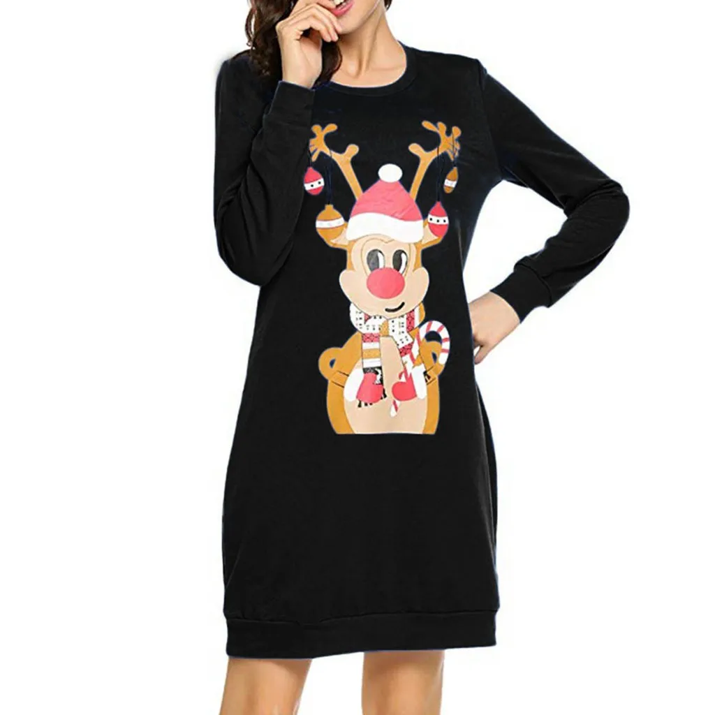 Женское рождественское платье с длинным рукавом и принтом обезьяны, женское мини-платье, женское Повседневное платье обтягивающее мини-платье noel femme #50