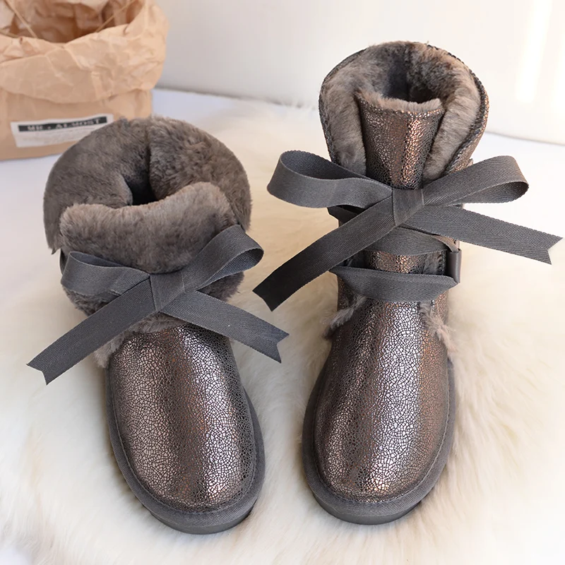 Новые модные женские водонепроницаемые ботинки австралийские зимние ботинки из натуральной кожи женская теплая обувь нескользящая резиновая подошва