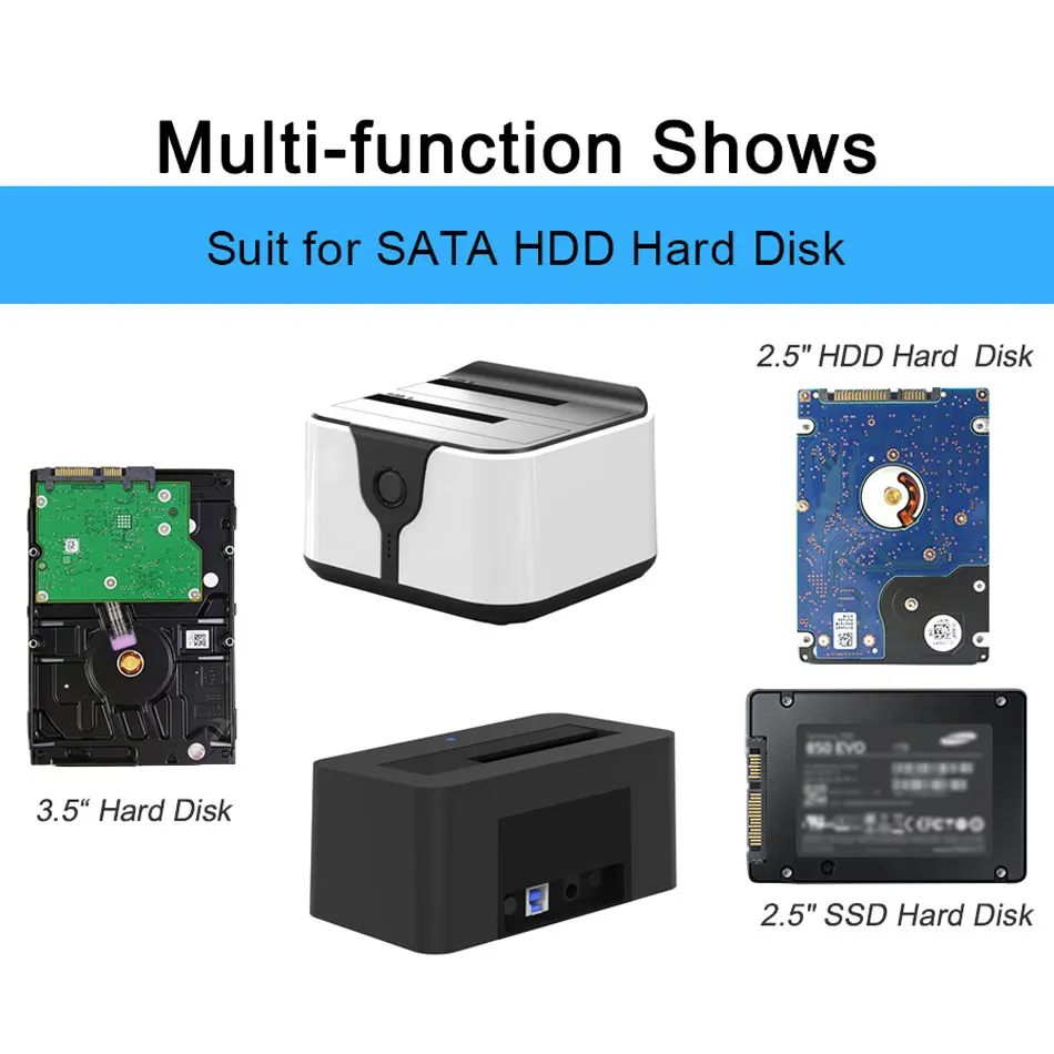 Док-станция для внешнего жесткого диска 3,02,5 дюйма, 2 отсека, SATA USB 3,5, SSD