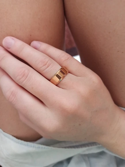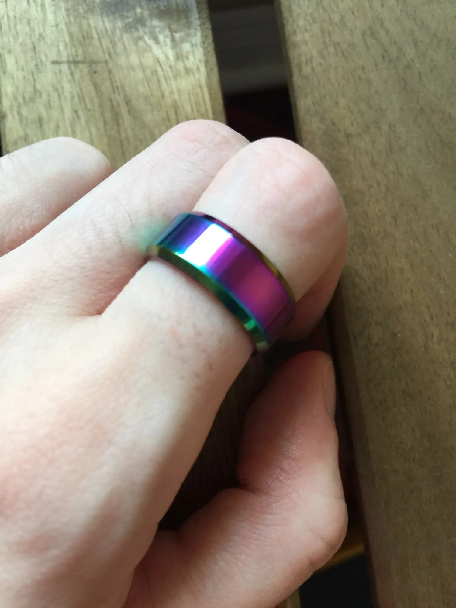 Аккуратное кольцо... Очень интересные ювелирные изделия. Нержавеющая сталь облегчает уход и не окрашивает пальцы. Я рекомендую это кольцо всем, кто это считает.