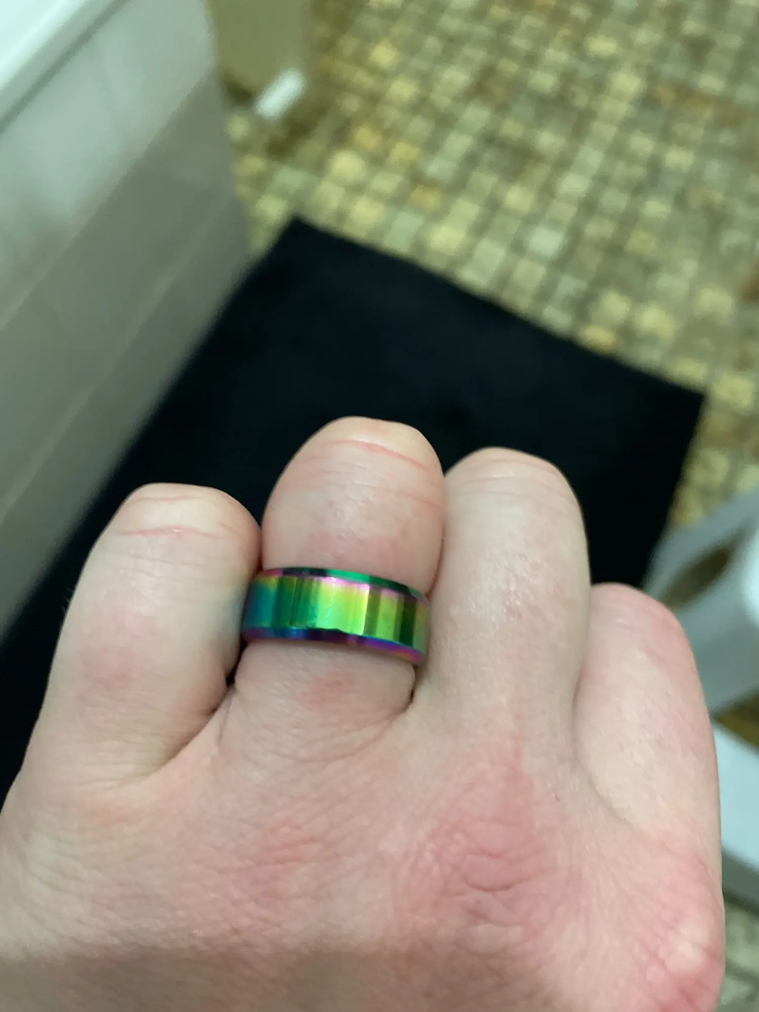 Кольцо село отлично! Толстенькое. Палец не зеленеет, сталь хорошая. Немного огорчило, что тут больше зелёных отблесков, я надеялась на сине-фиолетовые. Но это уже просто вкусовщина) Ношу 17й размер, купила 7й. Всё отлично.