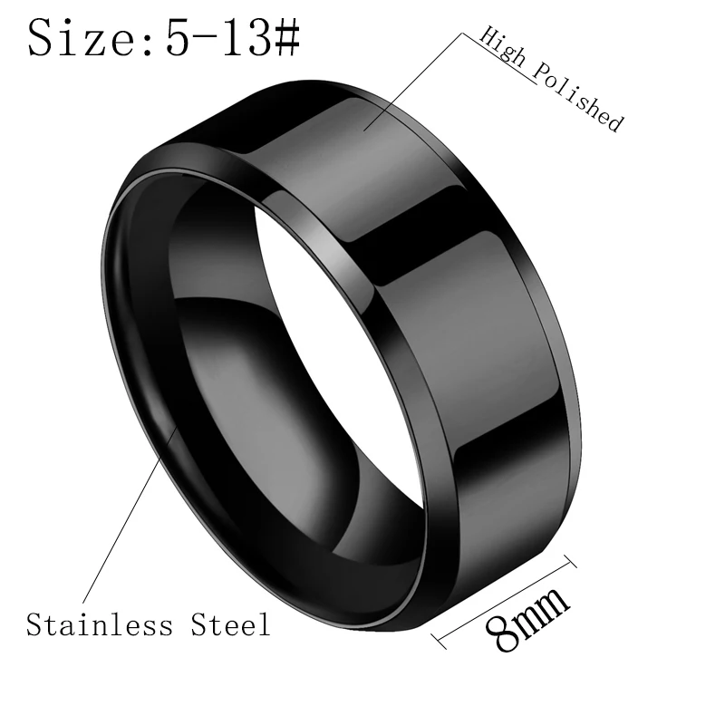 Кольцо мужское из нержавеющей стали, из титана, полированное, черное, Радужное, голубое, розовое золото