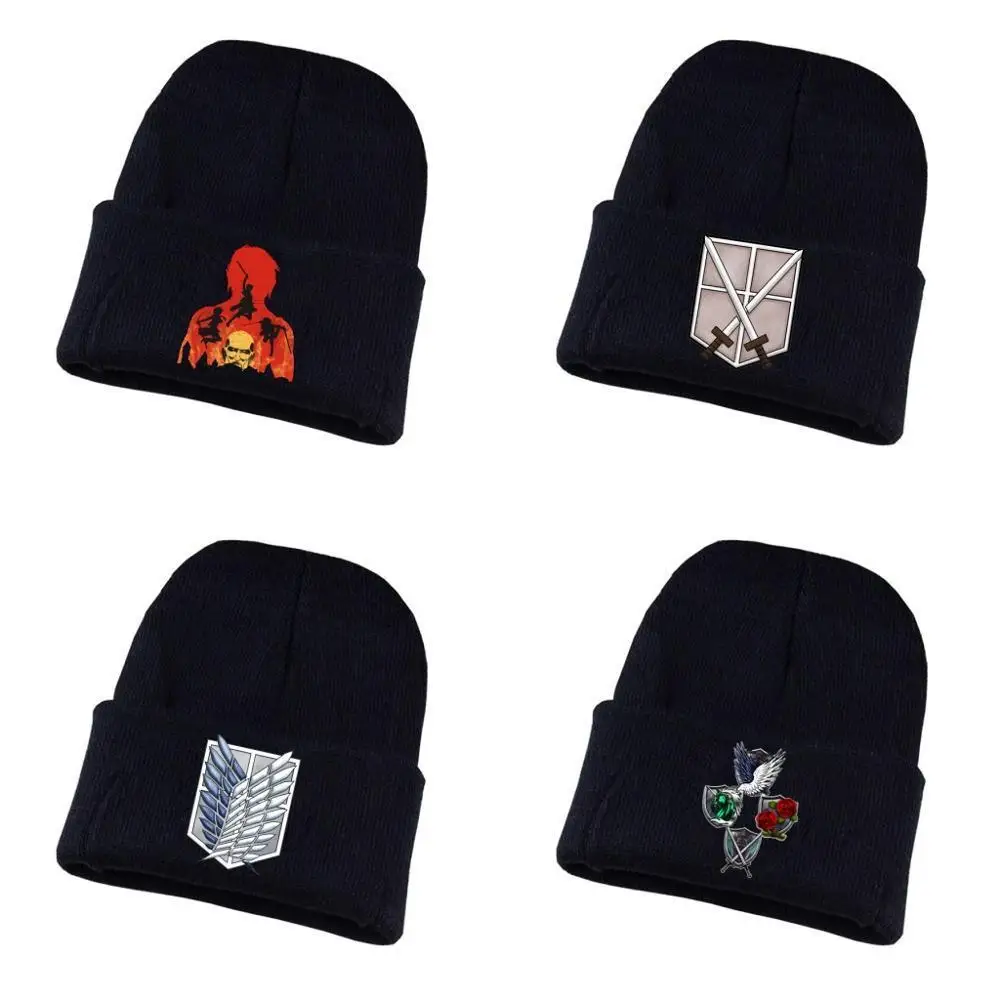 Вязаная шапка для косплея из аниме атака на Титанов, шапка унисекс с принтом, Повседневная хлопковая шапка для взрослых, зимняя вязаная шапка для подростков