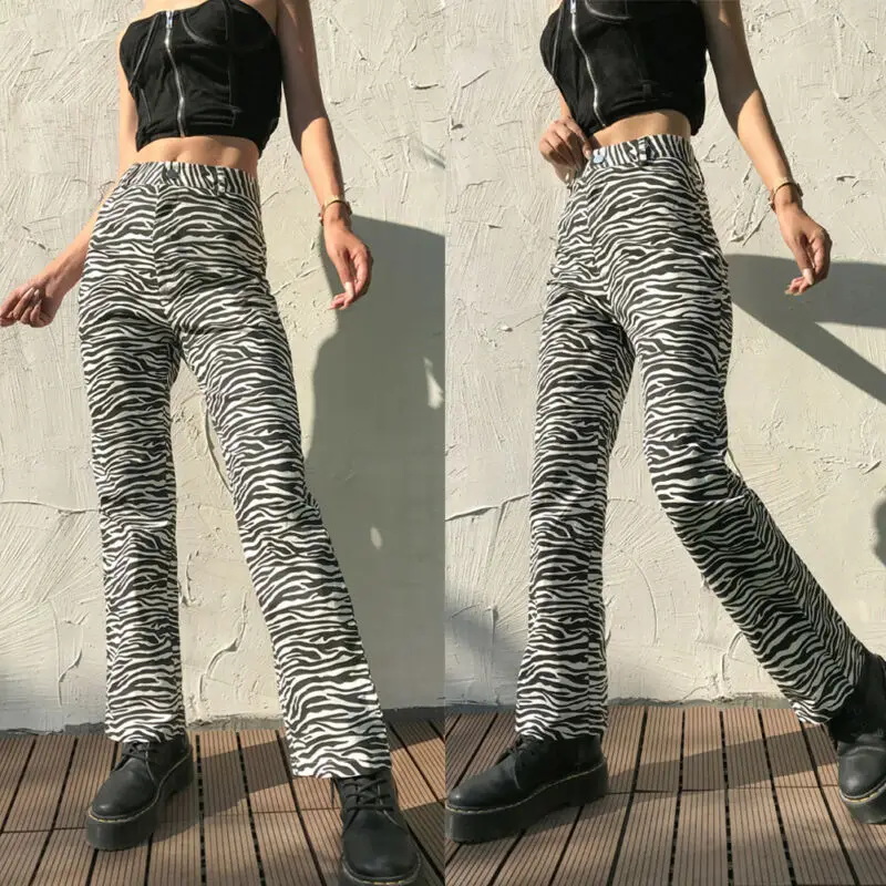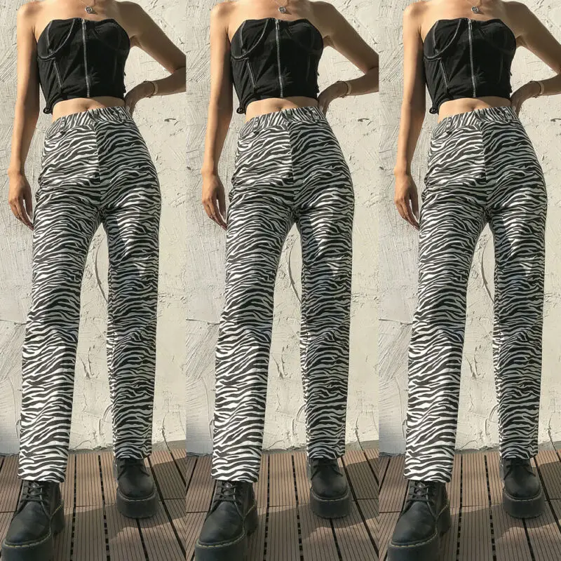 Брюки женские с принтом зебры, модные брюки в полоску, уличная одеж...