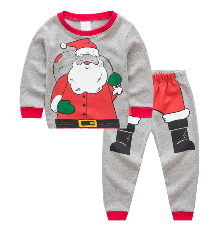 Пижама для мальчиков и девочек, из 2 предметов, топ + штаны, 2020, Рождественский пижамный комплект, 100% хлопок