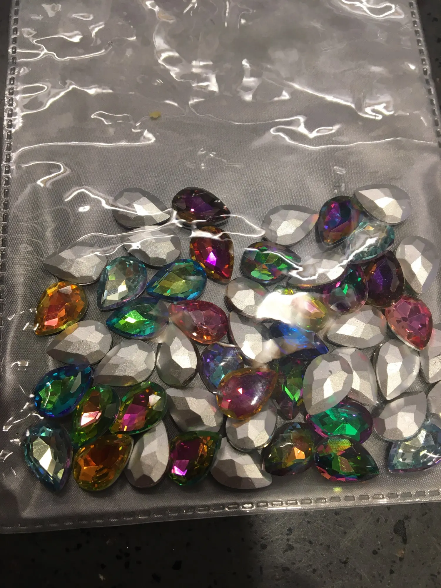 Получила. Красивые, радужные стразы, к сожалению цвета распределены неравномерно больше зелёных.