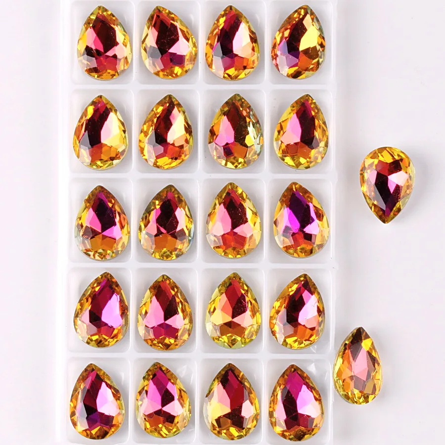 Стеклянный кристалл в форме капли воды 3 размера радуга и желе конфеты AB цвета точка обратная сторона клея на Стразы бусины Аппликация diy отделка