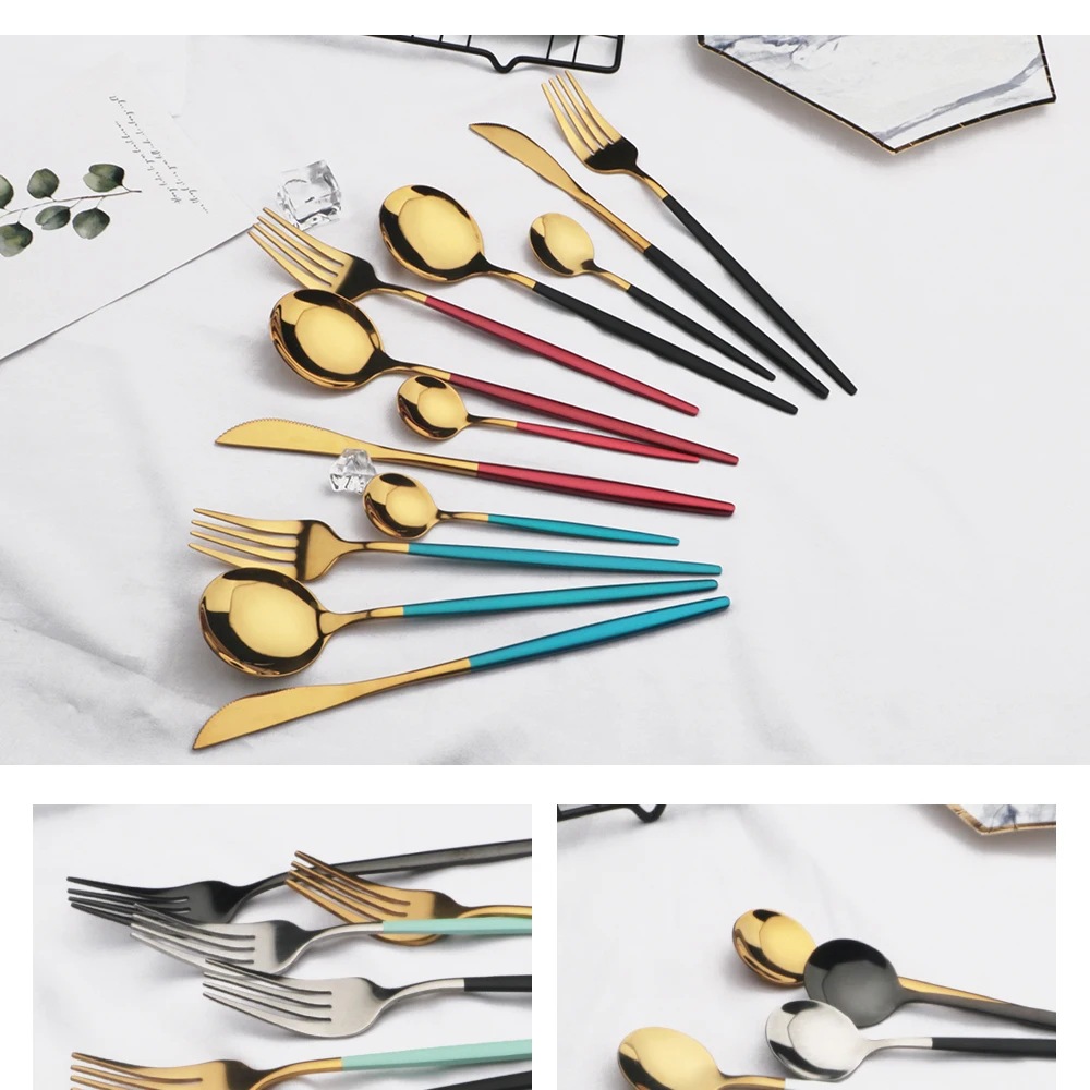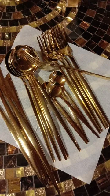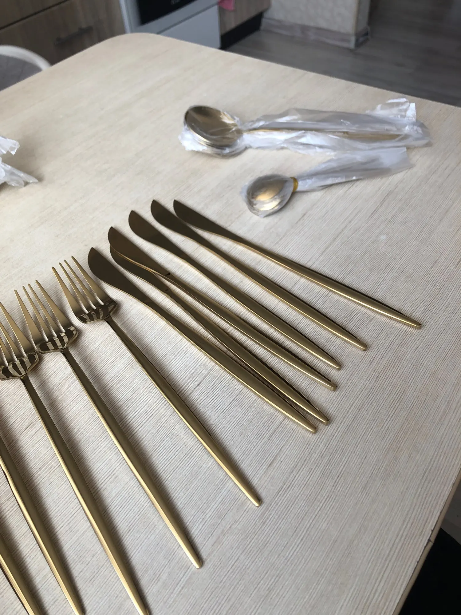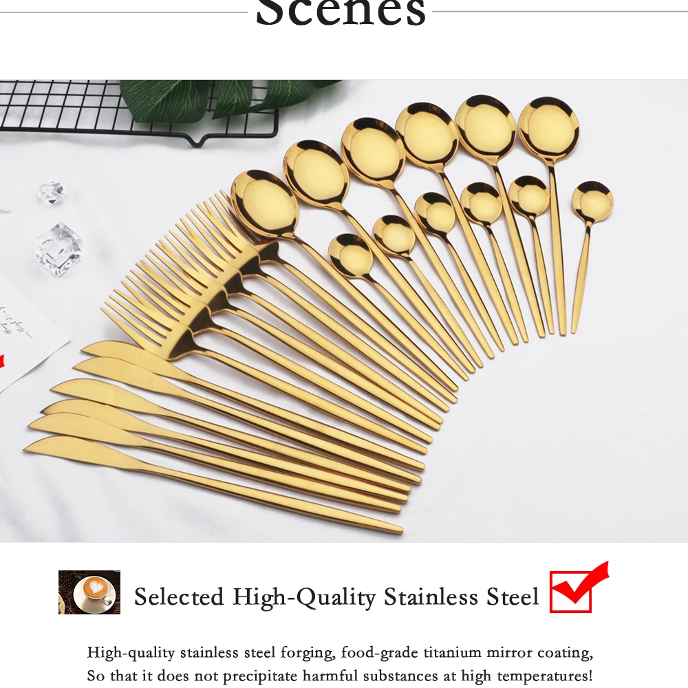 Набор золотых столовых приборов из нержавеющей стали, 24 шт.