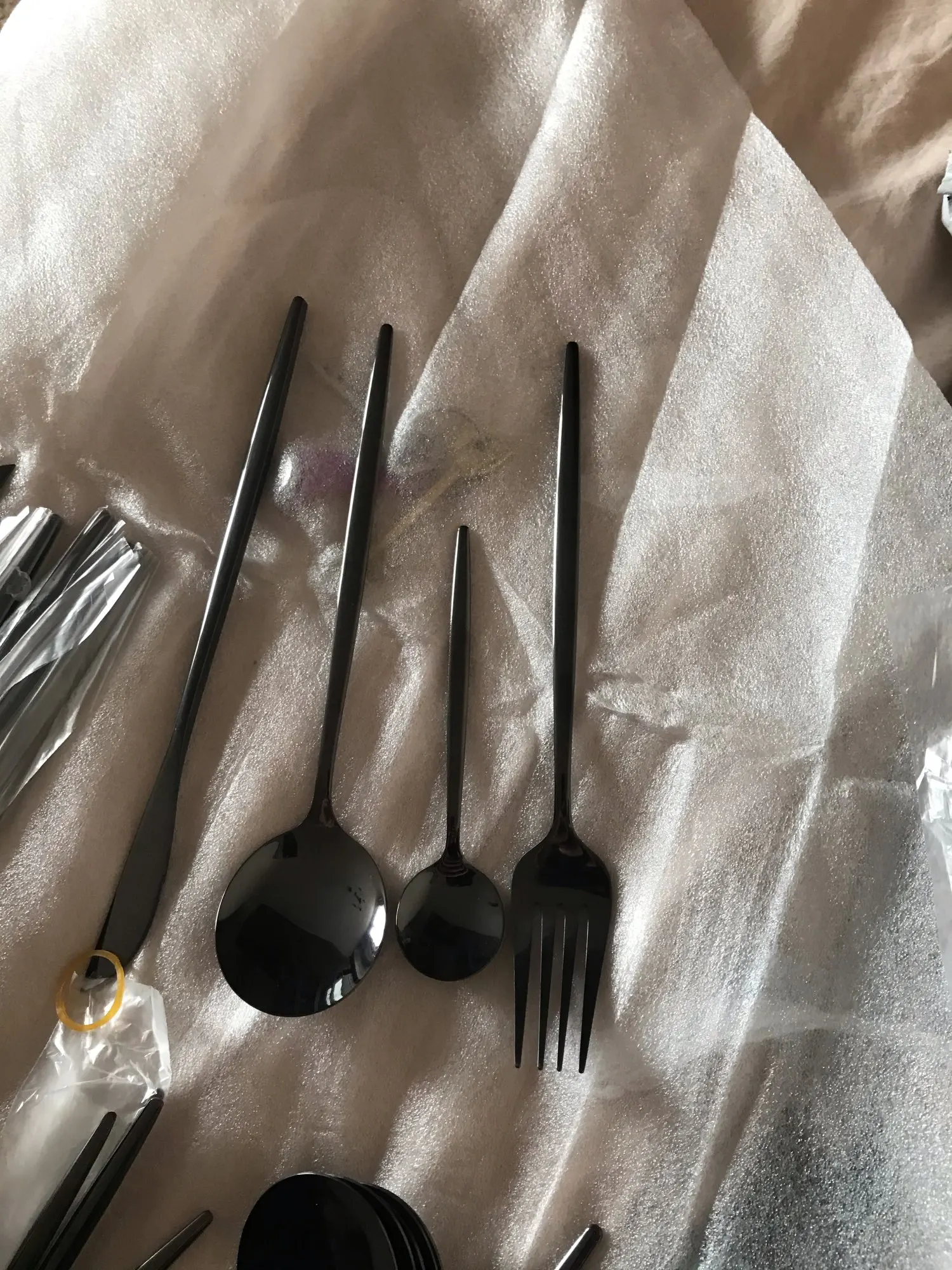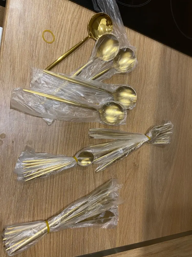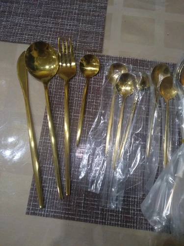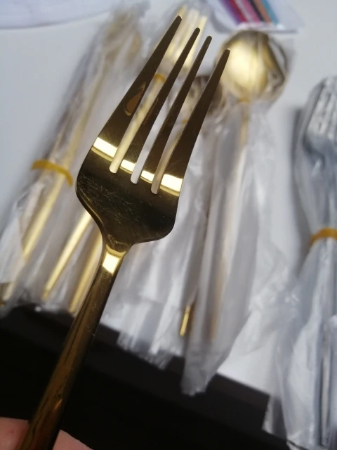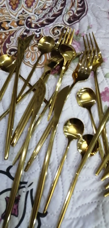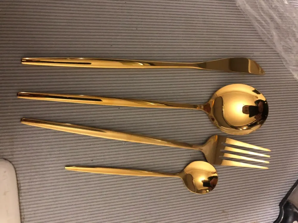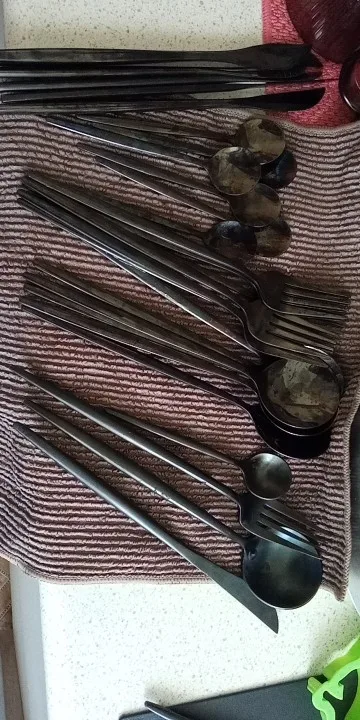 Мне очень нравится, ничего не сказать, кроме ножа, который немного отличается, он толще, чем ложки и вилки. Они просто великолепны. Я получил их 21 декабря, когда заказывал в начале декабря, так что это очень быстро. Я рекомендую продавцу