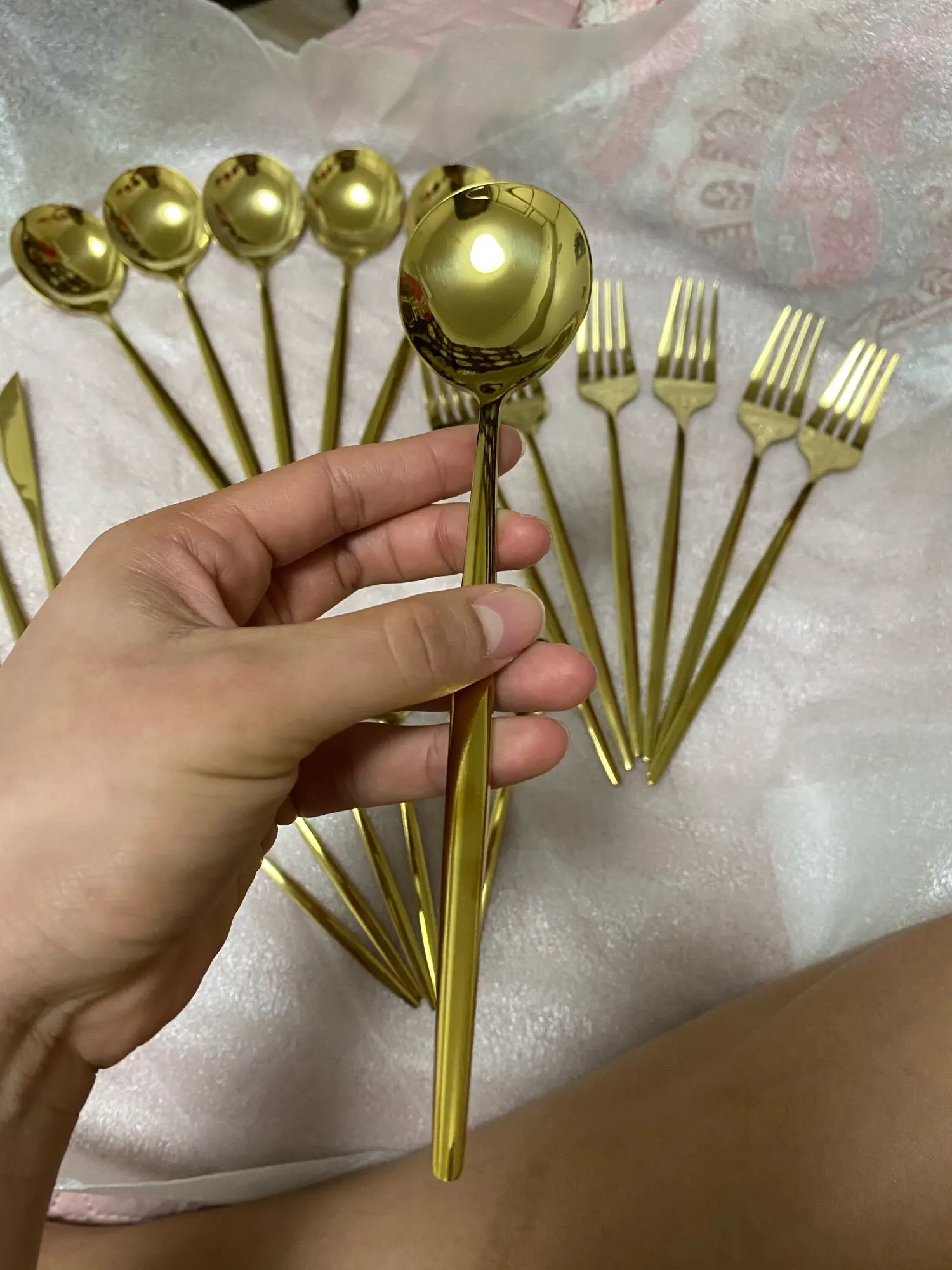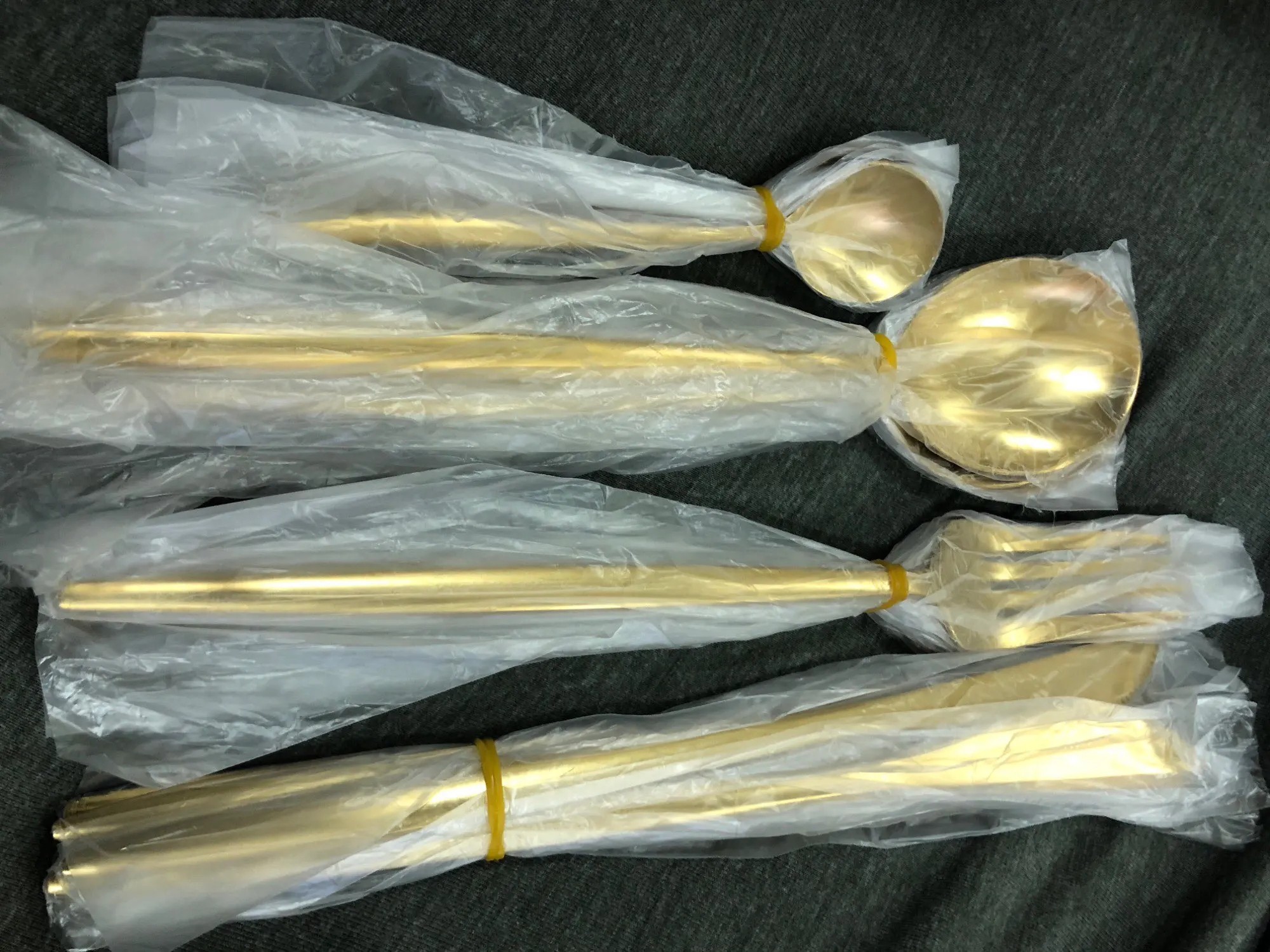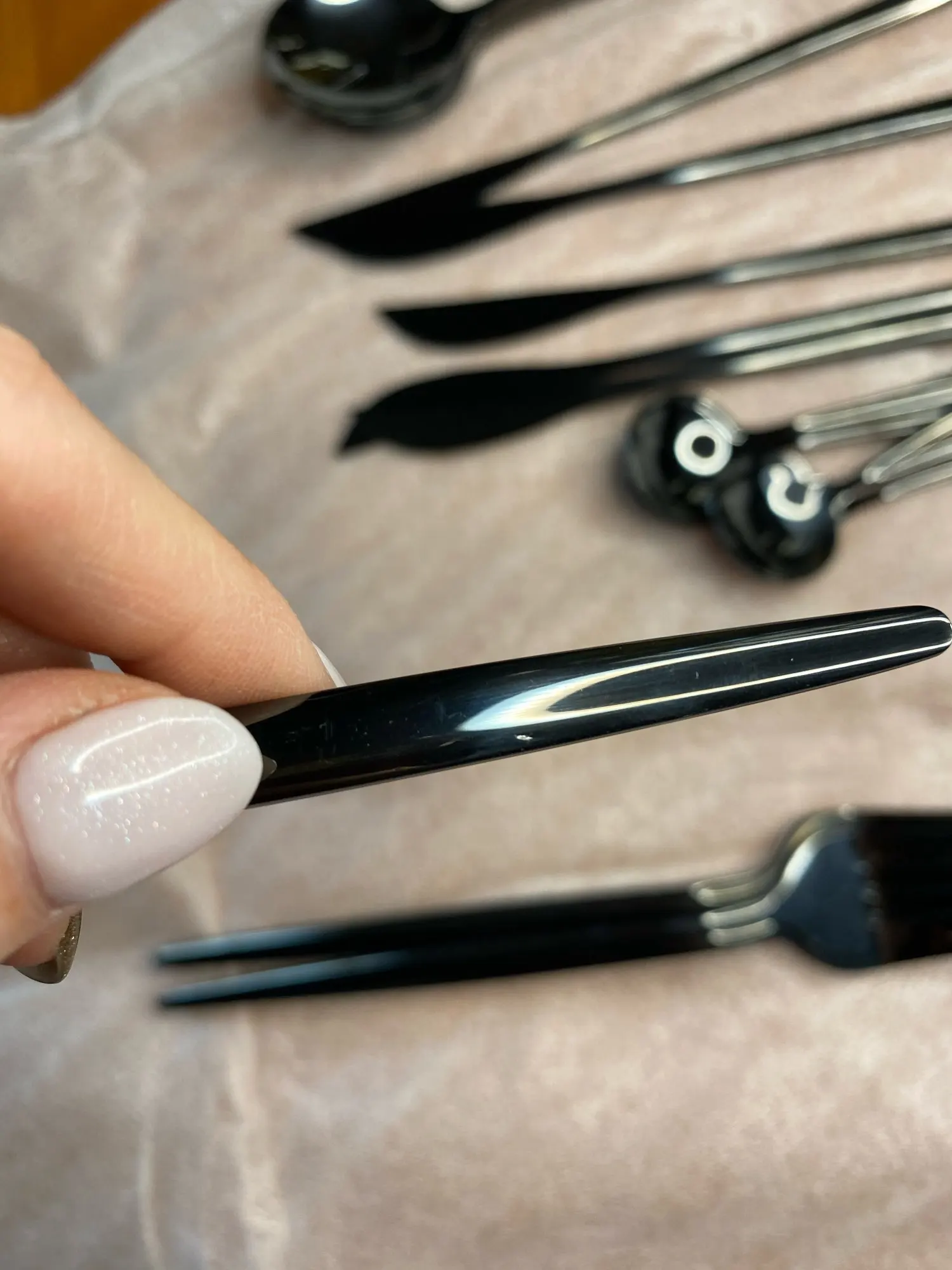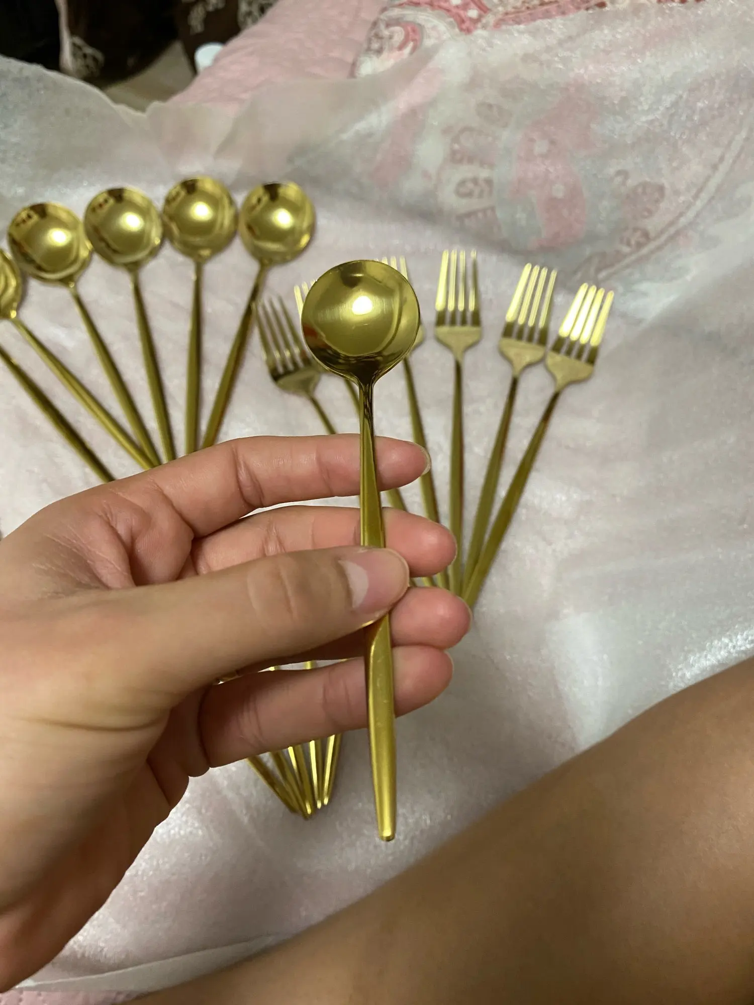 Мне очень нравится, ничего не сказать, кроме ножа, который немного отличается, он толще, чем ложки и вилки. Они просто великолепны. Я получил их 21 декабря, когда заказывал в начале декабря, так что это очень быстро. Я рекомендую продавцу