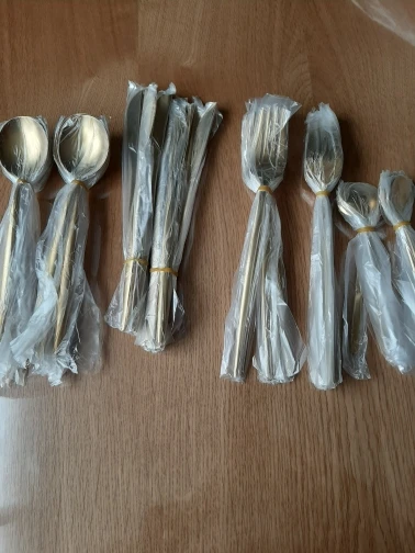 Хороший набор за свою цену. Пришёл в Ростов-на-Дону за две недели на пункт выдачи в пятерочке. Каждый прибор был упакован отдельно в свой пакетик. Я ожидала, что у всех приборов будет такая ручка выпуклая, как у ножей, на деле увы, ручки очень тонкие, из-за этого есть неудобство. Чайные ложки прям крохотули