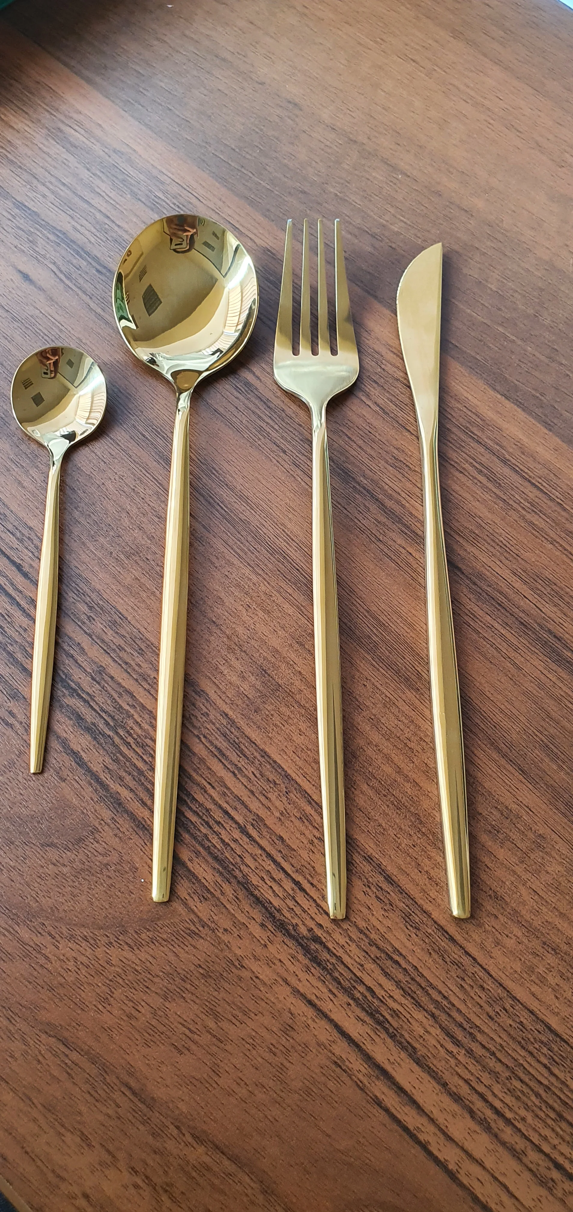 Красивые, удобные и такие как мне и хотелось . Все соответствует описания. Мыла в посудомойке с эко средствами, не потемнели ничего не облезло. Большая ложка удобная хоть и круглая , ножи и вилки острые, правда стейк ещё не резали . Доставка средняя , но не из за продавца , а из за новогодних праздников и работы нашей таможни.