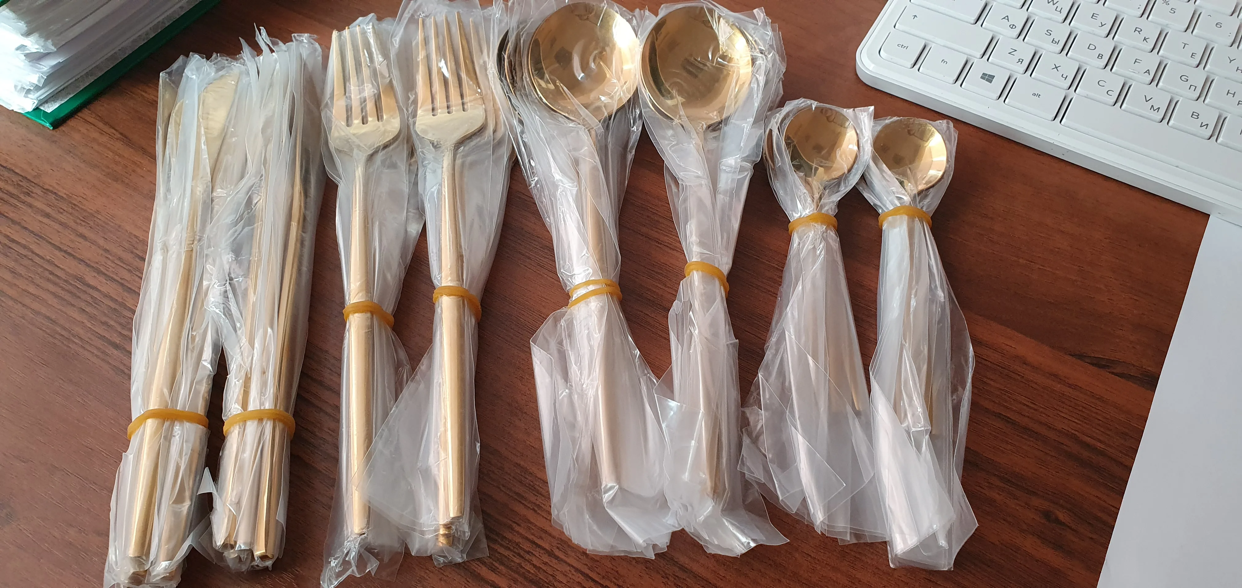 Набор просто супер. Каждая вилочка, ложечка в отдельном пакетике. Главное, чтобы не темнел метал. Заказом очень довольна