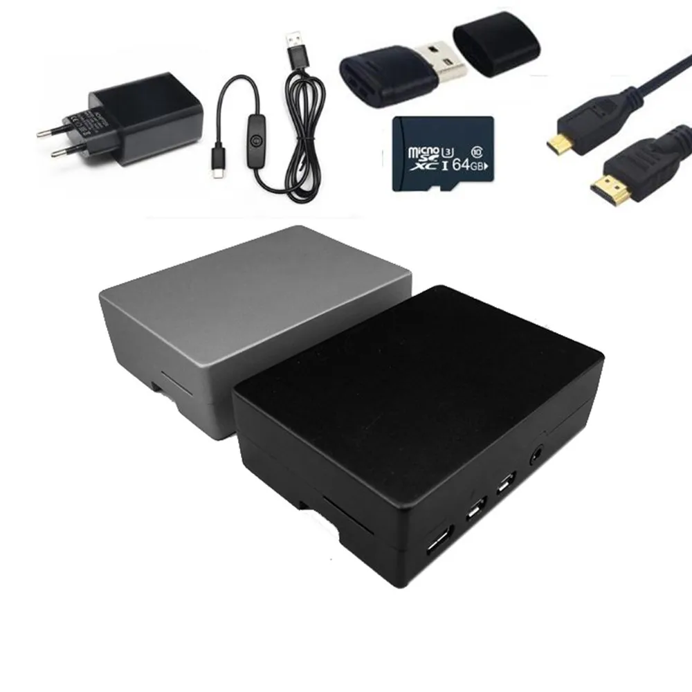 Raspberry PI 4 чехол в комплекте Алюминиевый Чехол 5 в 3 А адаптер питания 64 Гб Кабель Micro SD для Raspberry Pi 4 Модель B