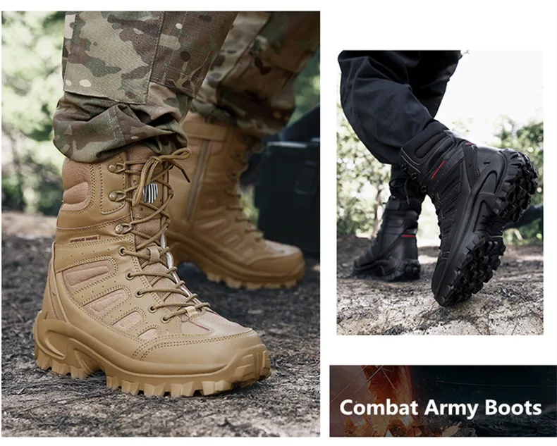 Мужские ботинки в стиле милитари, ботильоны с нескользящей подошвой, зимние водонепроницаемые, мотоциклетные ботинки, уличные ботинки для пустыни